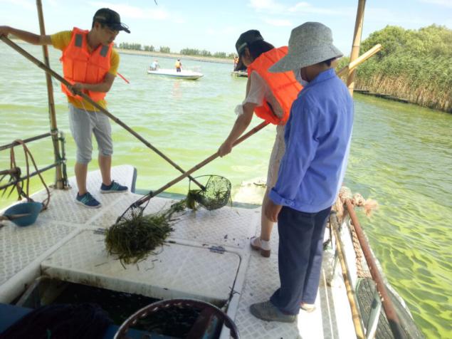 深入地了解蓝藻泛滥的成因及可实施方案后,大家立即联系了当地蓝藻打捞局,亲身体验了一把打捞蓝藻的感觉,在有限的时间里,同学们体会到了蓝藻打捞工人在酷暑下日复一日打捞蓝藻的不易,由此心生钦佩之情。此次活动不仅让我们更加了解蓝藻泛滥的成因及解决措施,更让大家学会了如何寻找解决问题的办法,如何恰当得与不同身份的人沟通,锻炼了大家为人处事的能力。此次活动不只是一个结束,相反,是一个良好的开端。我们将继续密切关注并让更多的小伙伴了解并参与到太湖蓝藻治理中,共同保护我们赖以生存的美好地球。