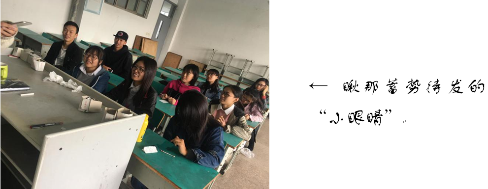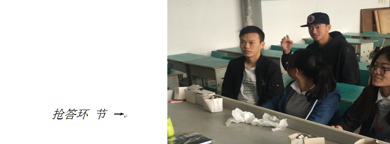 比赛开始,大家或静坐观望,或冥思苦想,或交头接耳评论着。有些因为给出了答案而乐滋滋,有些也因为晚一步答出而略显遗憾。但是淘汰者也没有失落,而是饶有趣味地观看比赛。决赛是抢答,第一个问题下来,大家都愣了一下,因为诗句熟悉,恰似就在嘴边,但是就是说不出来。忽然一个男生大叫一声:啊!便举起了手,还没等到口令就立即答出了诗句。之后的抢答,大家越来越进入状态。