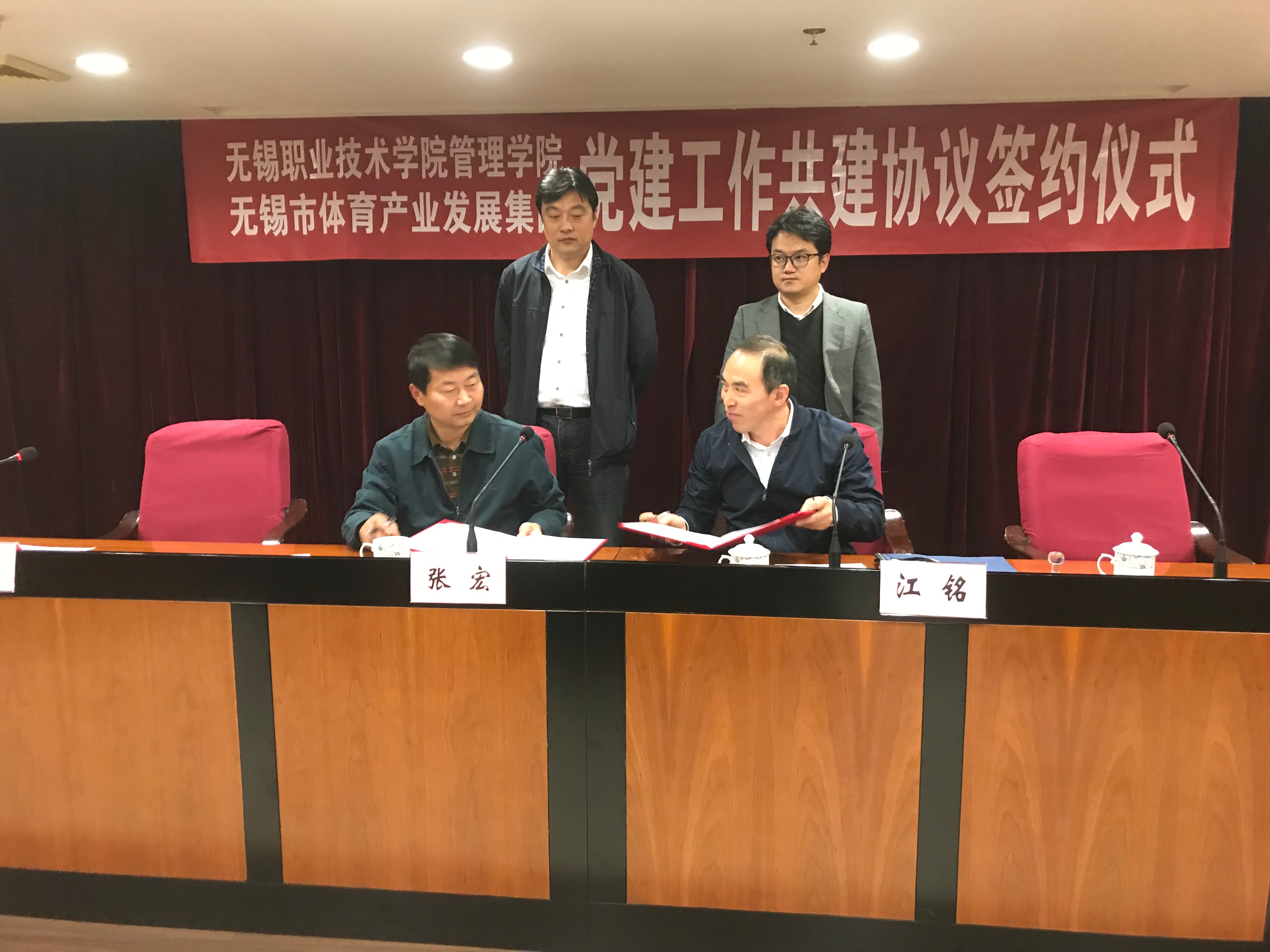 11月17日下午,玛雅吧 管理学院和无锡市体育产业发展集团校企党建共建签约仪式在体育中心游泳跳水馆举行。无锡市体育产业集团党委书记张宏、副书记汪浩,玛雅吧 管理学院党总支书记江铭、玛雅吧 管理学院副院长冯臻,集团各党支部书记、各支部党员代表和学院师生代表参加了签约活动。