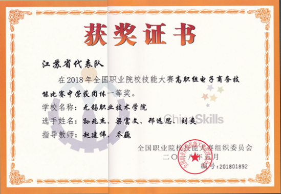 电子商务技能赛项共有来自全国的86支职业院校代表队同场竞技,要求各参赛队根据主题模拟网店运营环境,完成开店装修设计、客户服务、网店运营三个环节的相关任务,选手不仅在要参赛系统中开设符合要求的中英文网店,还需在规定时间内回答客户所提出的问题,并通过网络PK调整经营策略,对客户进行引流和转化,抢占市场份额。我院参赛队由管理学院孙兆杰、邢远思、刘爽,艺术与设计学院梁富文同学组成,赵建伟、乔巍老师指导,前期经历了省赛、选拔赛等环节,以选拔赛第一名的成绩代表江苏参加此次国赛。在赛前努力训练的基础上,选手现场分工合作、发挥稳定,经过7个半小时的角逐,最终名列前三,获得一等奖。赵建伟、乔巍老师被评为大赛优秀指导教师。