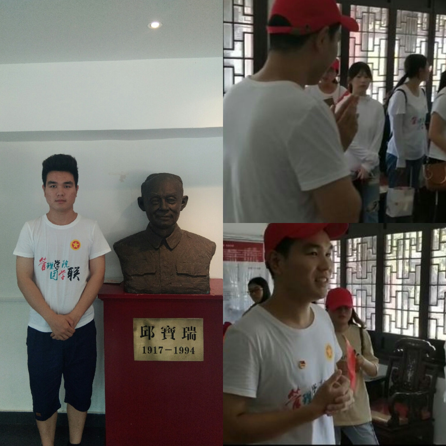 该陈列室坐落在水清道观之中,四周由古建筑环绕。同学们沿着历史悠久的南长街道走向陈列室,这时,一座道观就映入眼帘,道长热情地将我们带入陈列室。刚踏入,“迎接黎明”这四个大字展现在我们面前,另外九副展板挂在墙壁四周,讲述的正是从抗日战争时期到解放战争时期无锡革命烈士的英勇事迹。整个展厅最引人观看的是那一尊邱宝瑞同志的雕塑,当年正是他以培南小学校长的身份为掩护,成功地保护了中共无锡工委的四任书记在锡开展活动,为无锡的解放作出了杰出的贡献!这样“天下兴亡匹夫有责”的责任担当令人钦佩不已。正是有了老一辈党员的这种大无畏的革命精神,才使得过去落后的中国有了新的希望,伟大的共产主义革命才取得了成功。