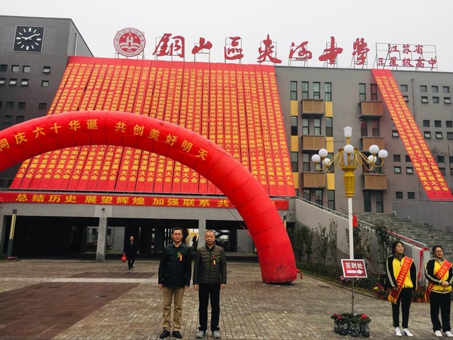 11月18日,应我校生源基地高中——徐州市铜山区夹河中学的邀请,管理学院党总支书记苗勇和郑红友老师赴徐州参加夹河中学的60华诞庆祝活动。
