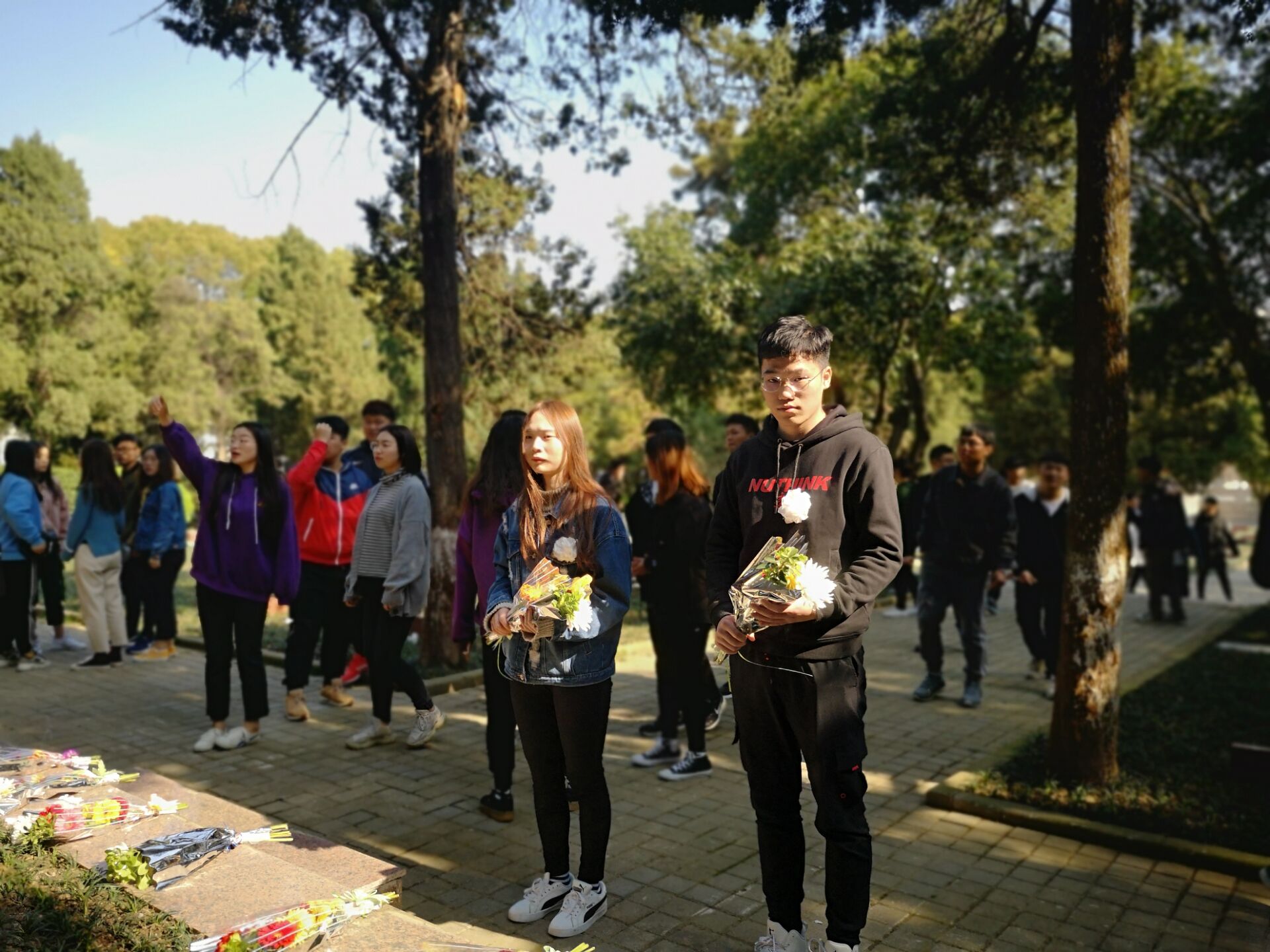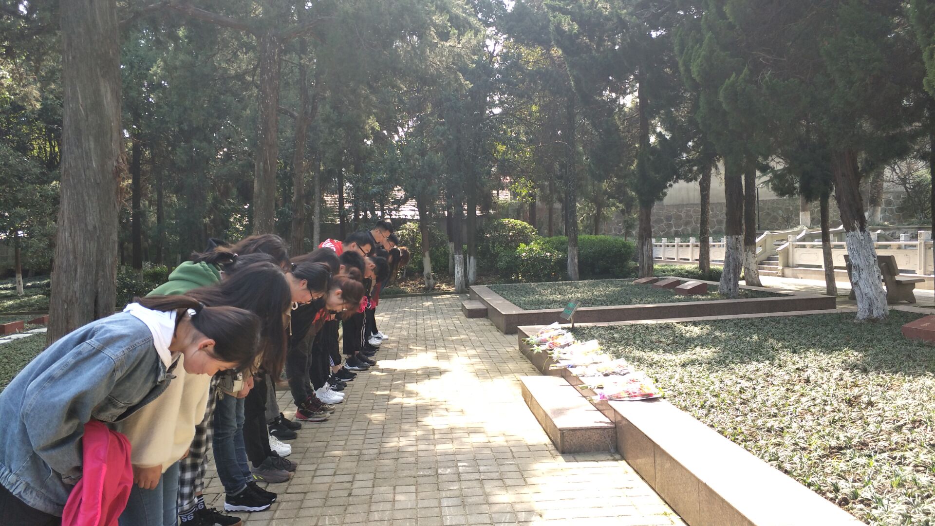 随后自愿前来悼念的志愿者与义工们与一起参观纪念馆,感受那些革命事迹带来的震撼。临走前,大家纷纷自觉来到烈士墓前,摘下胸前的白花,献上手中的鲜花,深深地鞠上一躬,以表敬仰与沉思。