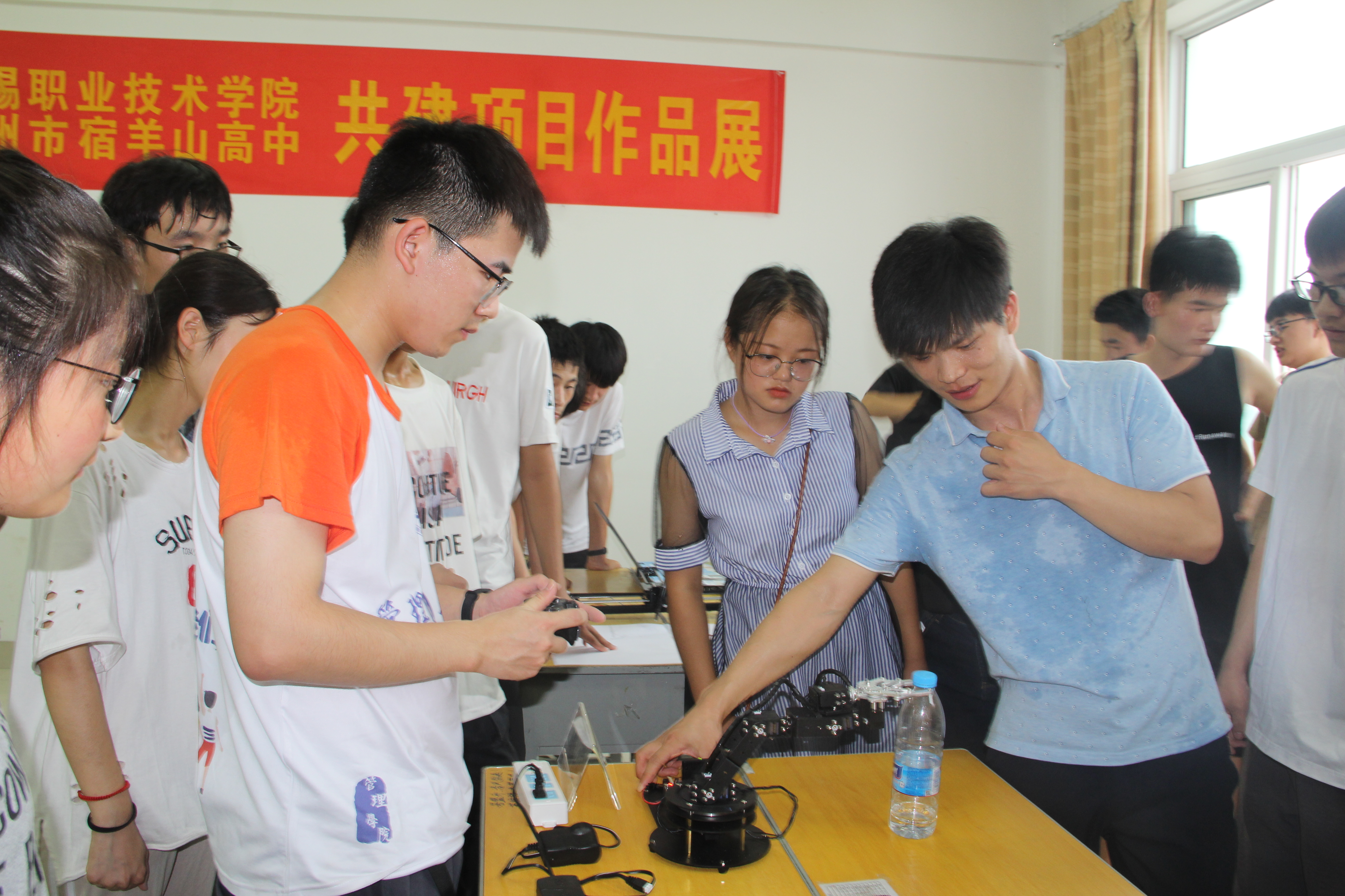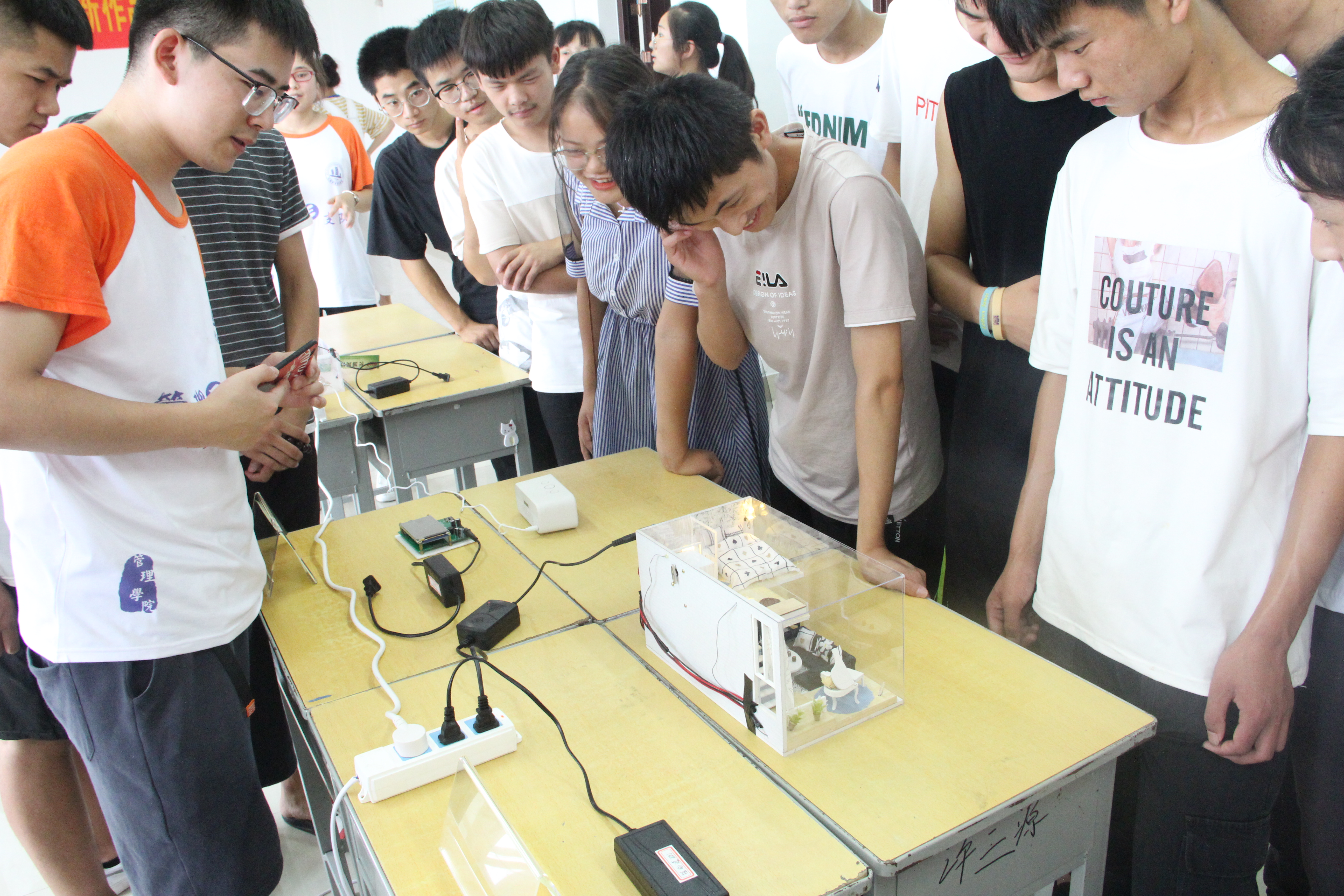 本次科技交流展示有写字机器人、机械臂、POVLED、特斯拉线圈、智能小屋、植物云呵护、垃圾分类模拟装置、太阳能追光、平衡小车等20件大学生科技作品。