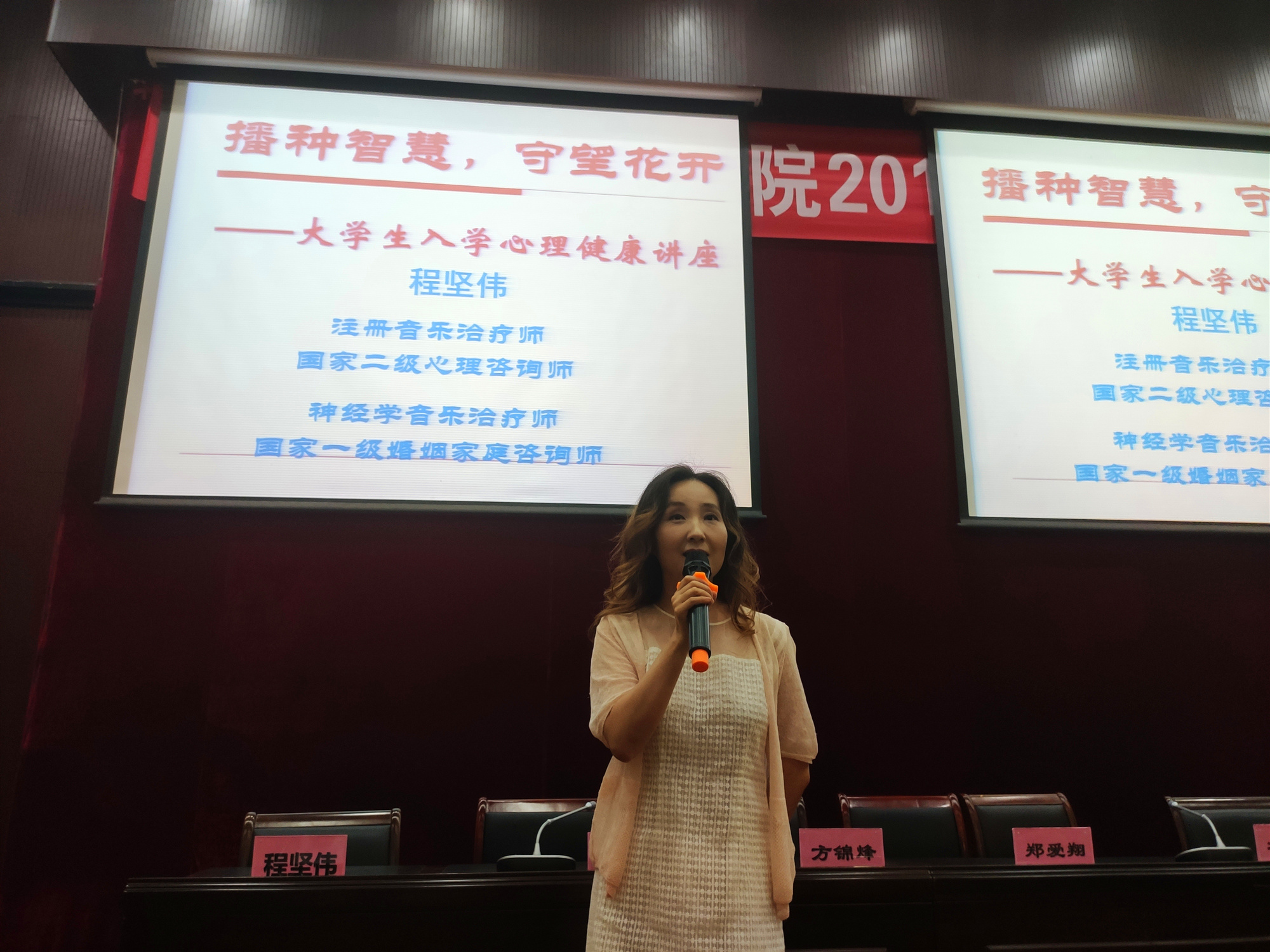 活动的最后一项内容是由心理学专家程坚伟老师为全体新生做心理健康辅导报告,程老师通过鲜活的案例、轻松的交流和热情的互动,给在场的同学们进行了一场难得的心理健康教育。同学们纷纷表示活动内容丰富多彩,形式新颖,收获良多,在今后的学习生活中将更加坚定理想信念,更加刻苦学习,以更加积极快乐的心态面对大学生活,努力成为德智体美劳全面发展的新时代大学生。