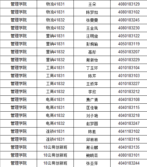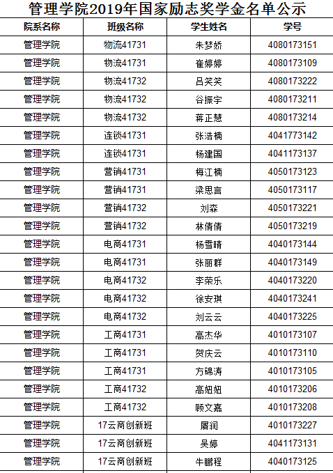 管理学院2018-2019年度国家励志奖学金获得者公示