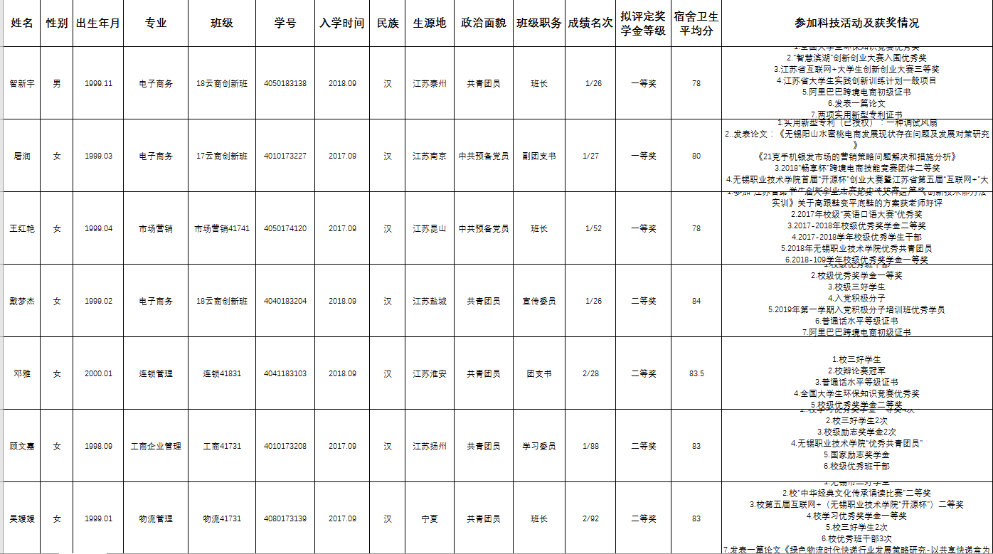 根据“迅杰”企业奖学金评选条件,综合考察评定学生“思想、学习、工作、生活”等综合素质,现将2019年度“迅杰”企业奖学金获奖名单公示。如对结果有异议,请于10.25日之前向学生办公室反映。