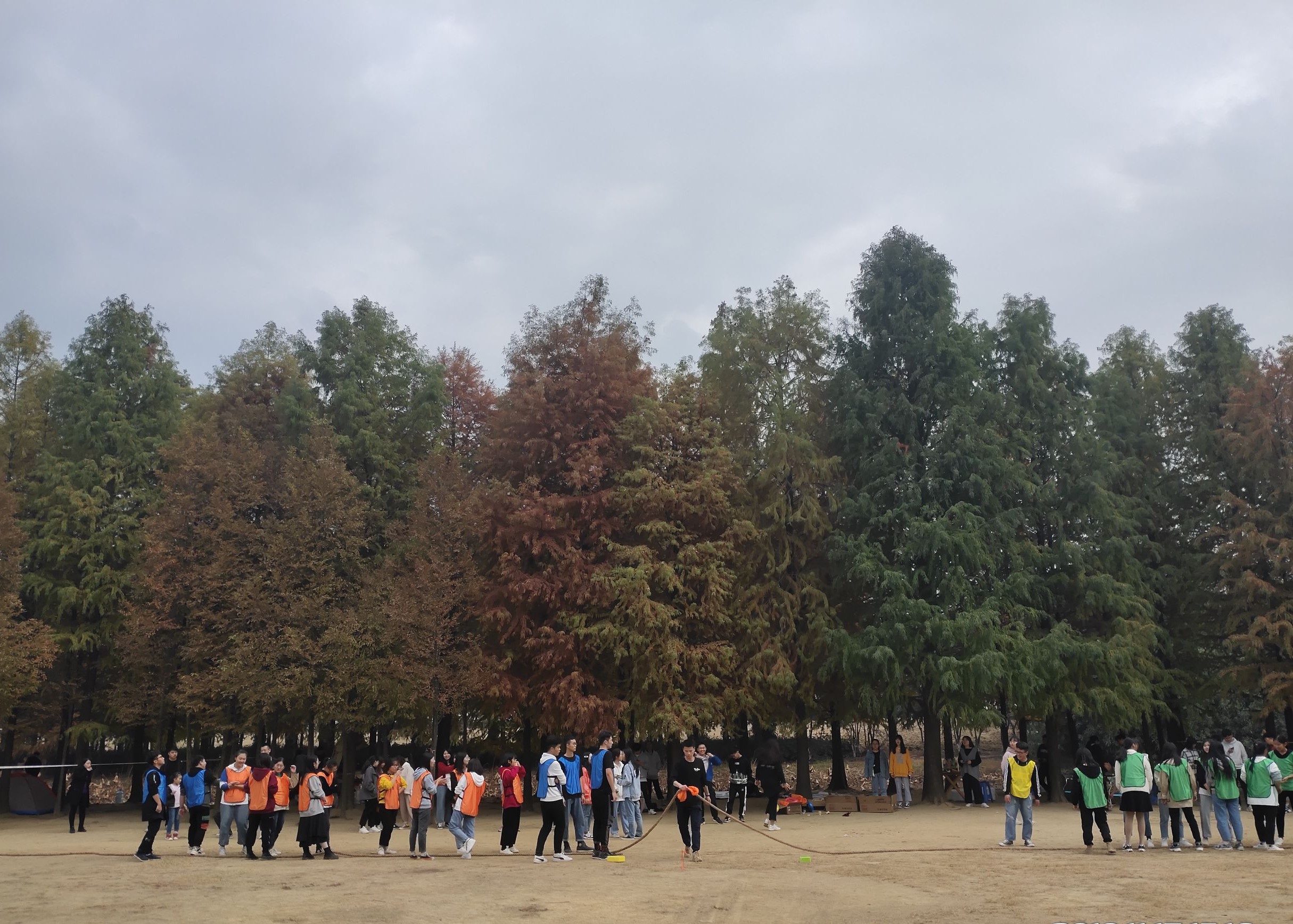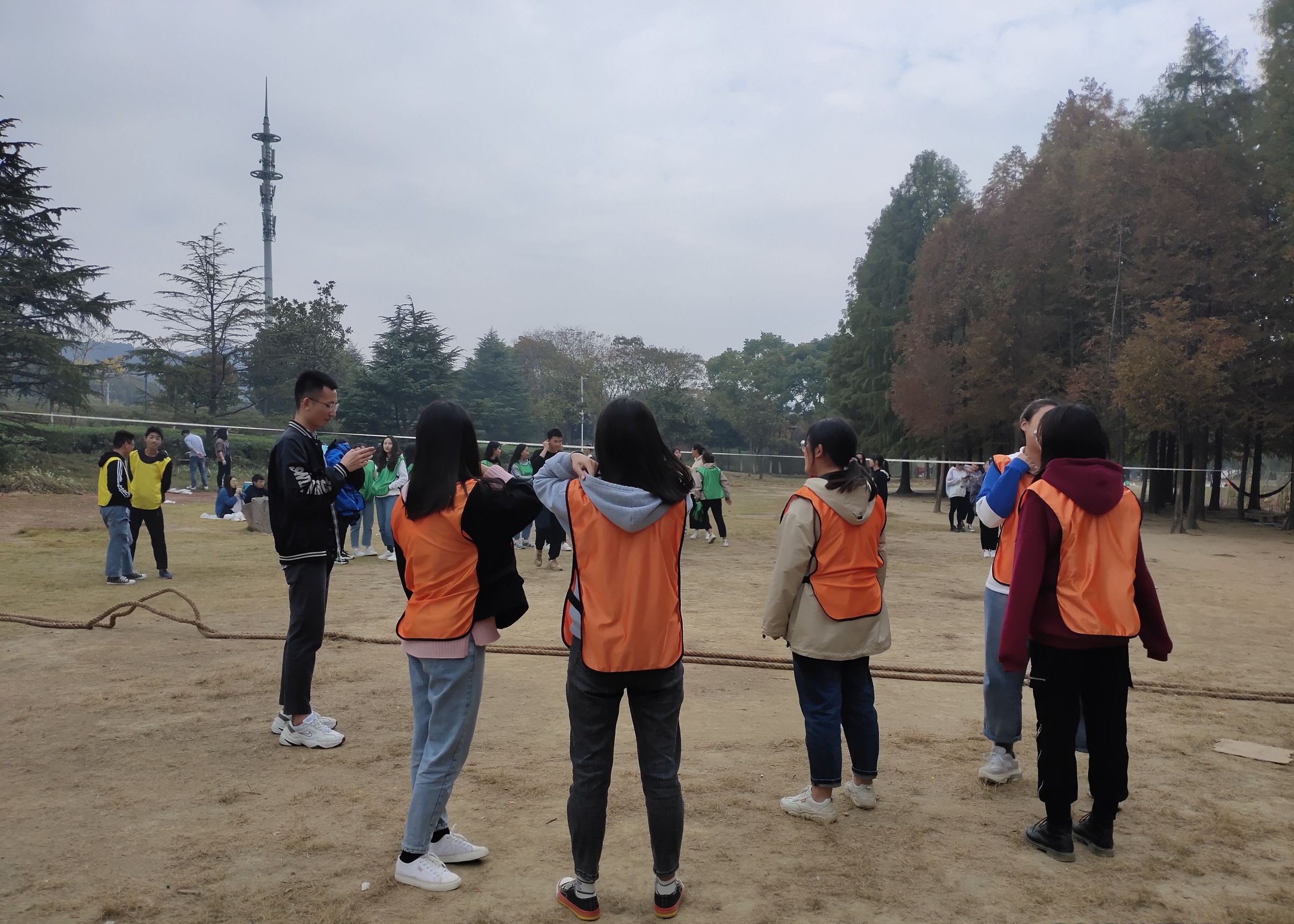 在户外开阔场地中,伴着山林野趣与鸟语花香,大家聊着自己生活中的各种趣事,不时发出阵阵欢呼声,现场氛围活跃。紧接着组织了踢毽子、跳绳、拔河等游戏活动。值得一提的是,此次户外活动,我们有幸与太湖学院的同学们进行了友谊拔河赛。大家在尽情挥洒拼搏的汗水之余,也交流了不一样的校园生活,增进了兄弟院校学生情谊。