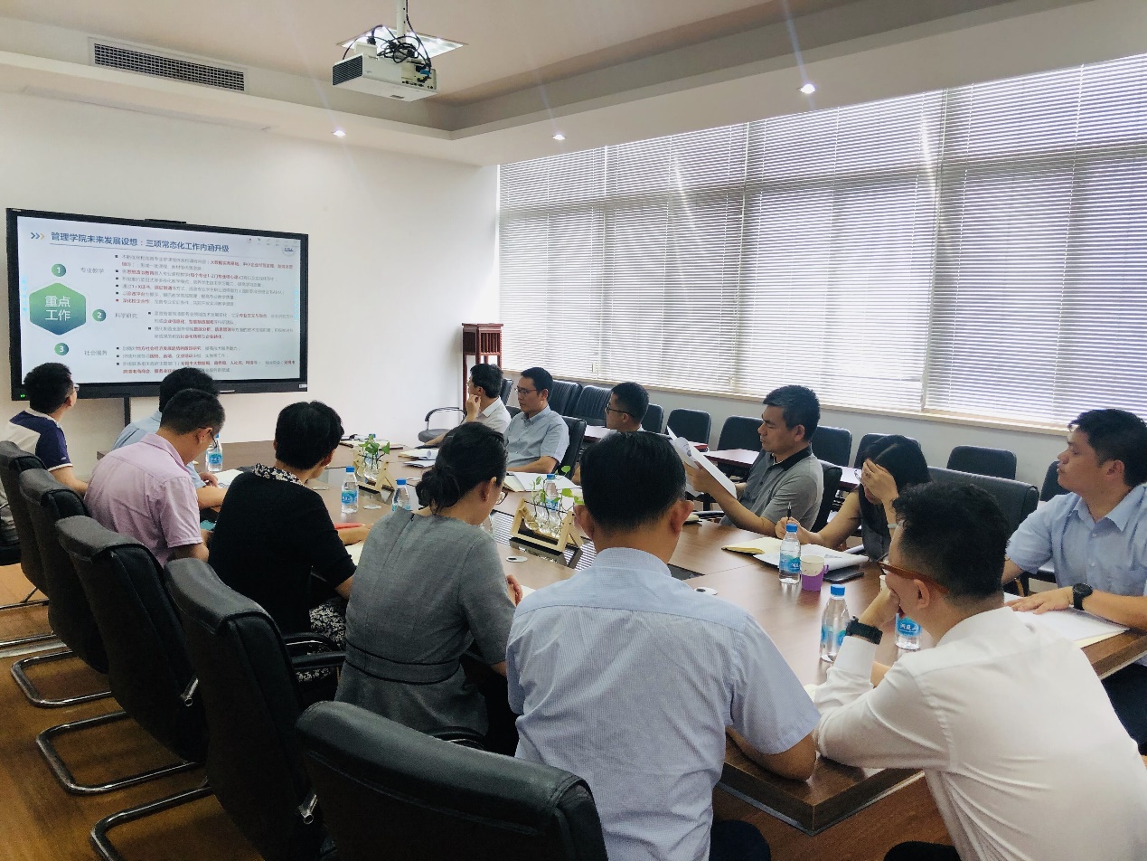 6月10日下午,校领导朱爱胜、杨雪琴、徐浪一行赴管理学院开展工作调研,党办校办、人事处、社科处等职能部门负责同志陪同调研。