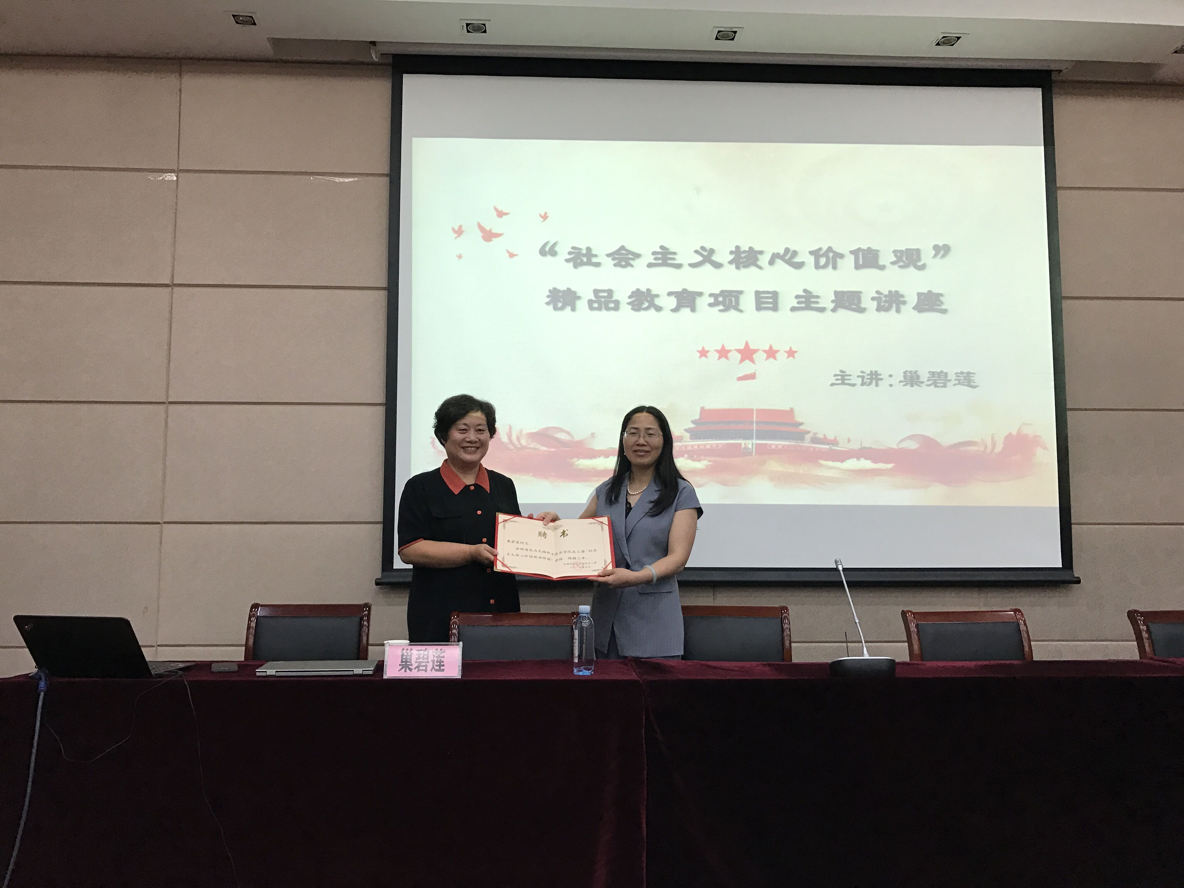 为进一步深化关工委优质化建设工作,结合省教育厅在全省范围内组织开展社会主义核心价值观“精品教育项目”活动,6月22日,校关工委、管理学院关工委和校团委联合邀请江苏省委组织部“党课名师”工程培育对象、无锡市党员教育红色讲师团讲师巢碧莲教授在国际交流中心第二报告厅为我校师生做了题为“荣氏家族的家国情怀”的主题报告。报告会由管理学院党总支书记苗勇主持。