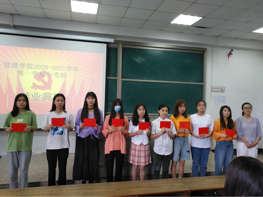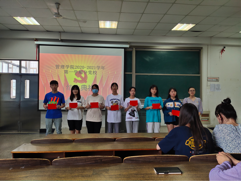 典礼开始,全体起立,奏唱国歌。由朱琳老师宣读《关于准予孟磊等32名学员结业的决定》,同时宣读《关于表彰管理学院分党校2020年第1期入党积极分子培训班优秀学员的决定》。出席此次典礼的领导和老师为结业学员和优秀学员颁发了结业证书和荣誉证书。学员们纷纷表示在今后的的学习和工作中会继续学习习近平新时代中国特色社会主义思想,在实践中积极践行党的基础理论,争取早日入党。