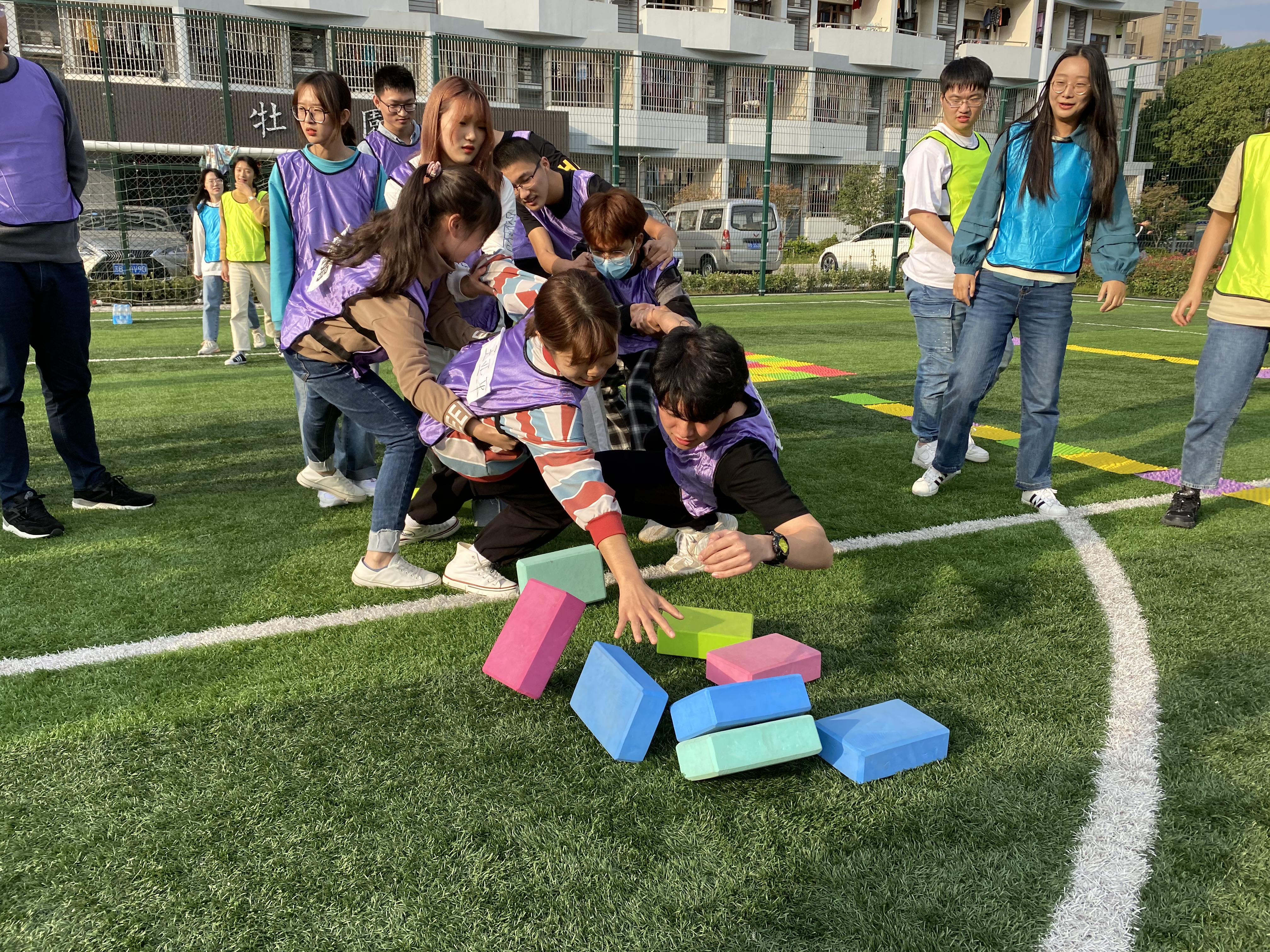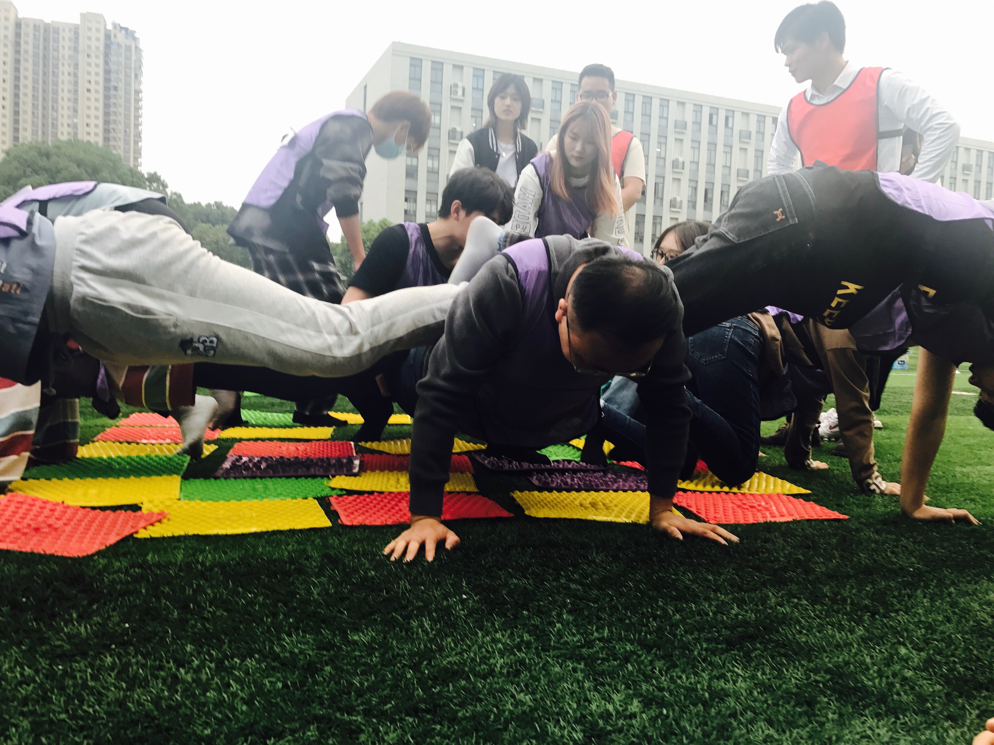 在“前方有难后方支援”环节中,队员在几米外的地方作为支援队员,协同收集前线所需物资,主要考验同学们的反应能力和奉献精神,有助于增强团队凝聚力;在“千人过河”环节,不借助工具的情况下取到块泡沫,然后所有人通过板砖过河的方式从起点到达终点,主要考验同学们的团队协作能力及统筹安排技巧;在“撕名牌”环节中,每个人背上贴有姓名卡,然后互撕,谁先被撕掉谁就输,活动展示出的是团队合作能力,协调能力,应变能力。