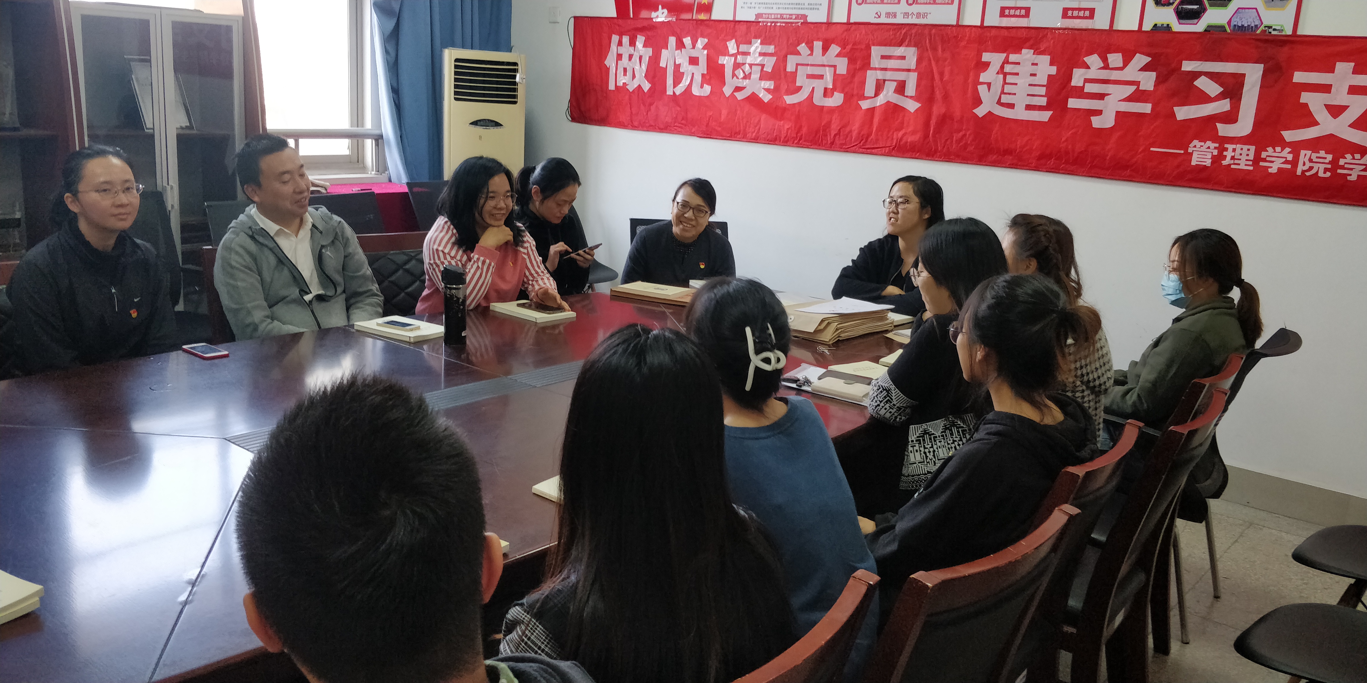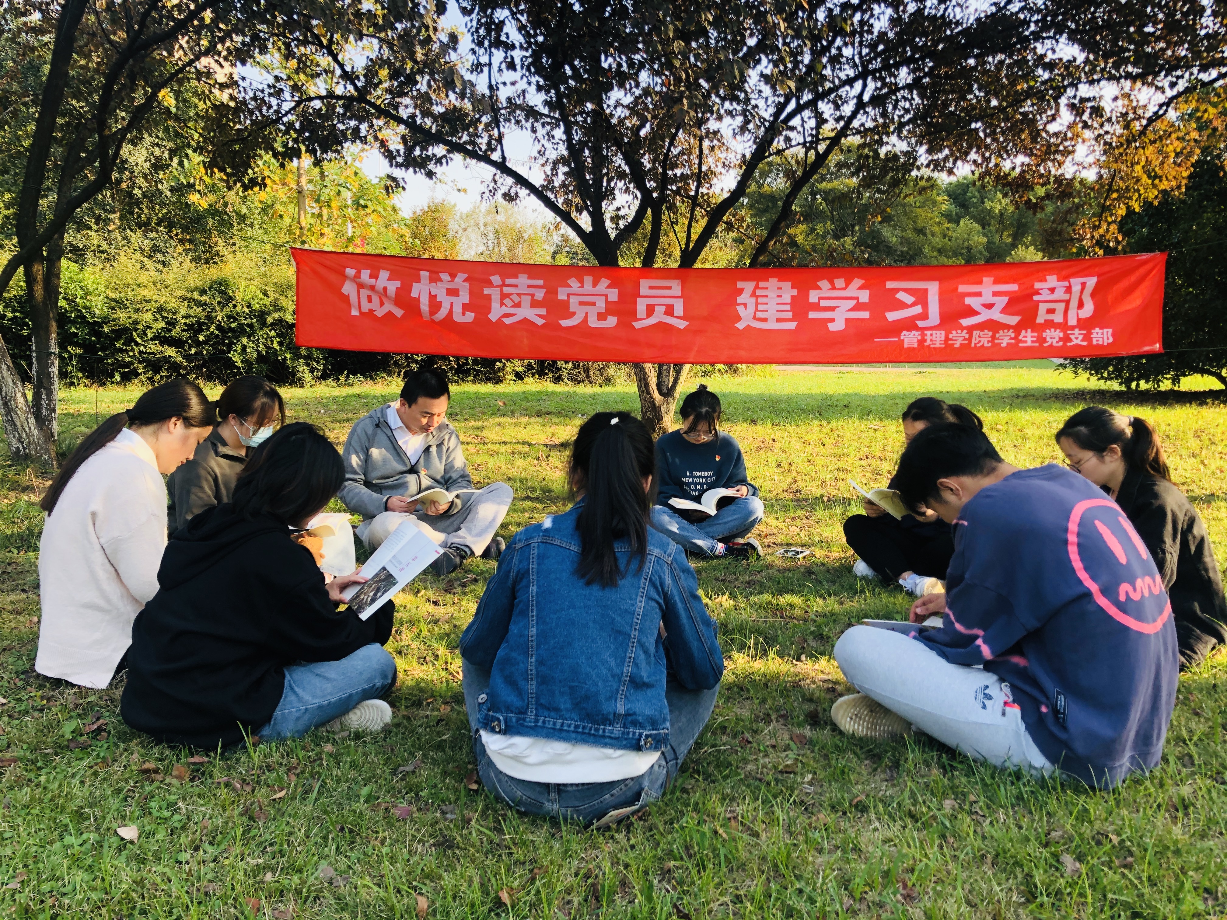 为深入学习贯彻党的十九大和十九届二中、三中、四中全会精神和习近平总书记“要多提倡读书,建书香社会”等重要指示精神,紧跟习近平总书记学读书之道,推动全体党员师生养成爱读书、读好书、善读书的“生活方式”,做到读书修身,坚定信念、为师立德,提升境界、增强本领,管理学院学生党支部组织开展多种形式的阅读活动,通过分享《中国共产党的九十年》、《激荡三十年》、《建党以来重要文献选编》等精彩片段,深入“四史”学习,传承革命先辈们的理想之光、信仰之光,牢固树立思想理论之基,以史为鉴,牢记为国育才、为党育人的时代使命。学生党员通过铿锵有力的悦读,也进一步表达了对党的热爱和对祖国、对r人民的奉献热情。