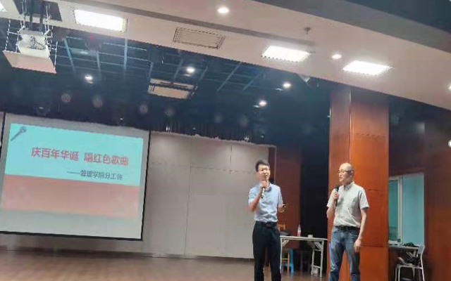 为庆祝中国共产党成立100周年,引导全体教职员工以歌声唱响伟大民族复兴,向党的百年华诞献礼,管理学院分工会于6月8号下午在大学生活动中心举办了主题为“唱支山歌给党听”学唱联谊及唱红色歌曲比赛活动,。