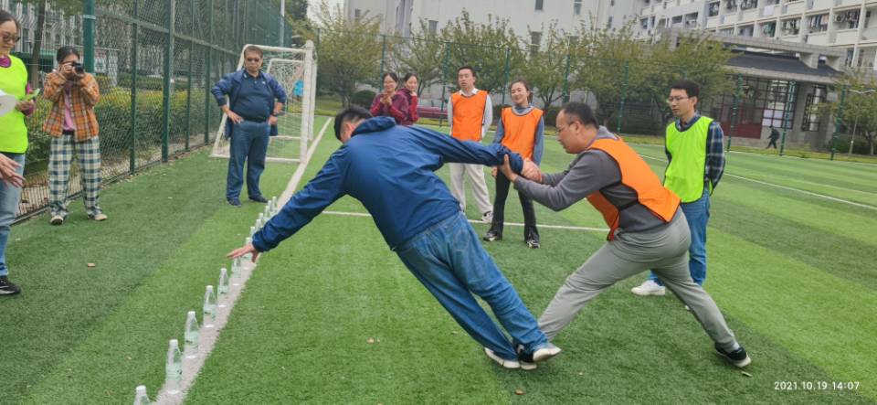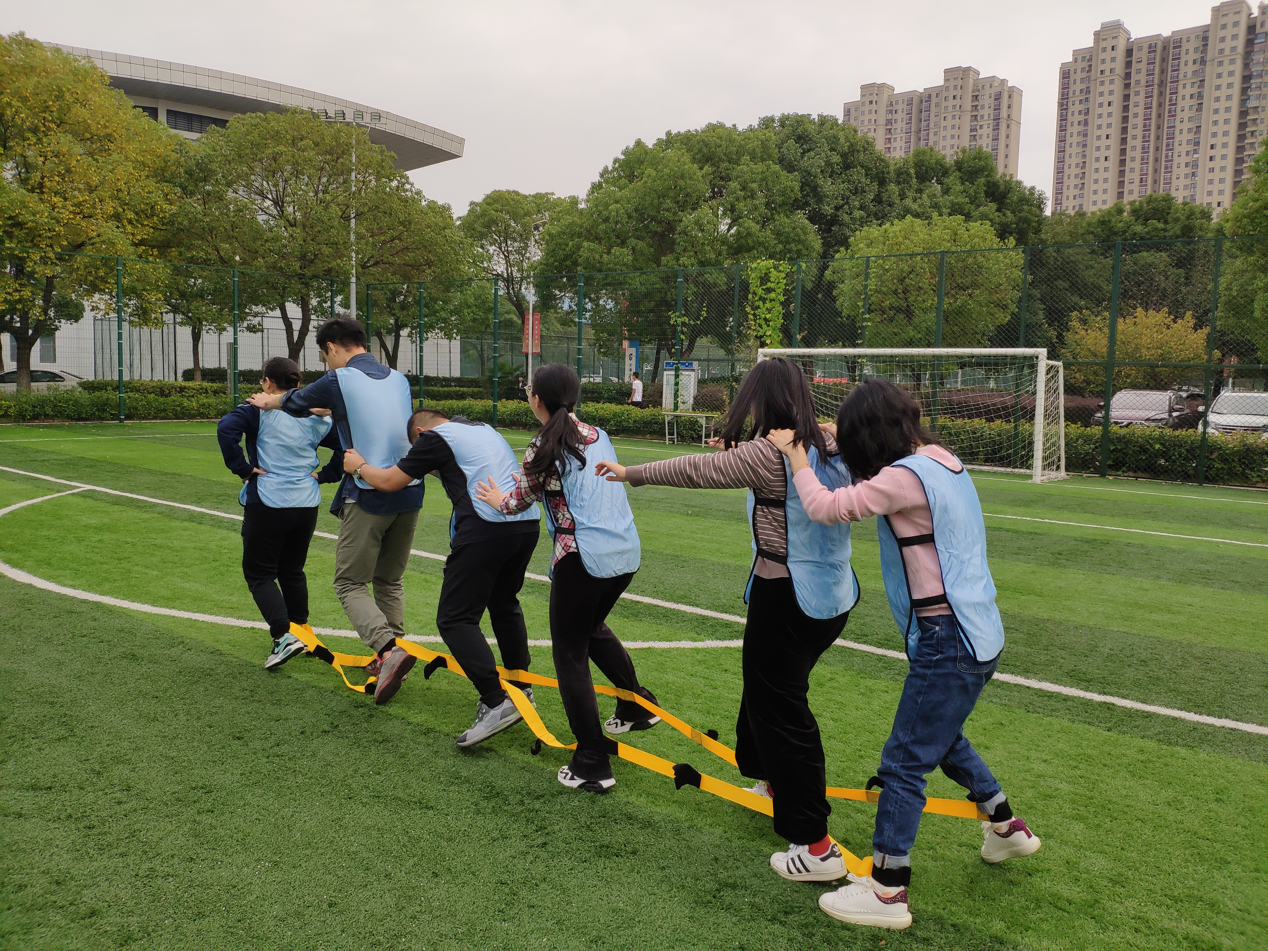 在营销系徐子州、郁小芳、唐羚3位团建培训师的引导下,老师们共同完成了鼓动人心、同心协力、群龙取水等拓展项目。此外,培训师将还老师们按系部分成三个小组进行趣味游戏竞赛,大家在游戏过程中齐心协力、默契配合,尽显风采。老师们为成功地完成集体项目而欢呼呐喊,绿茵场上留下了阵阵欢声笑语!