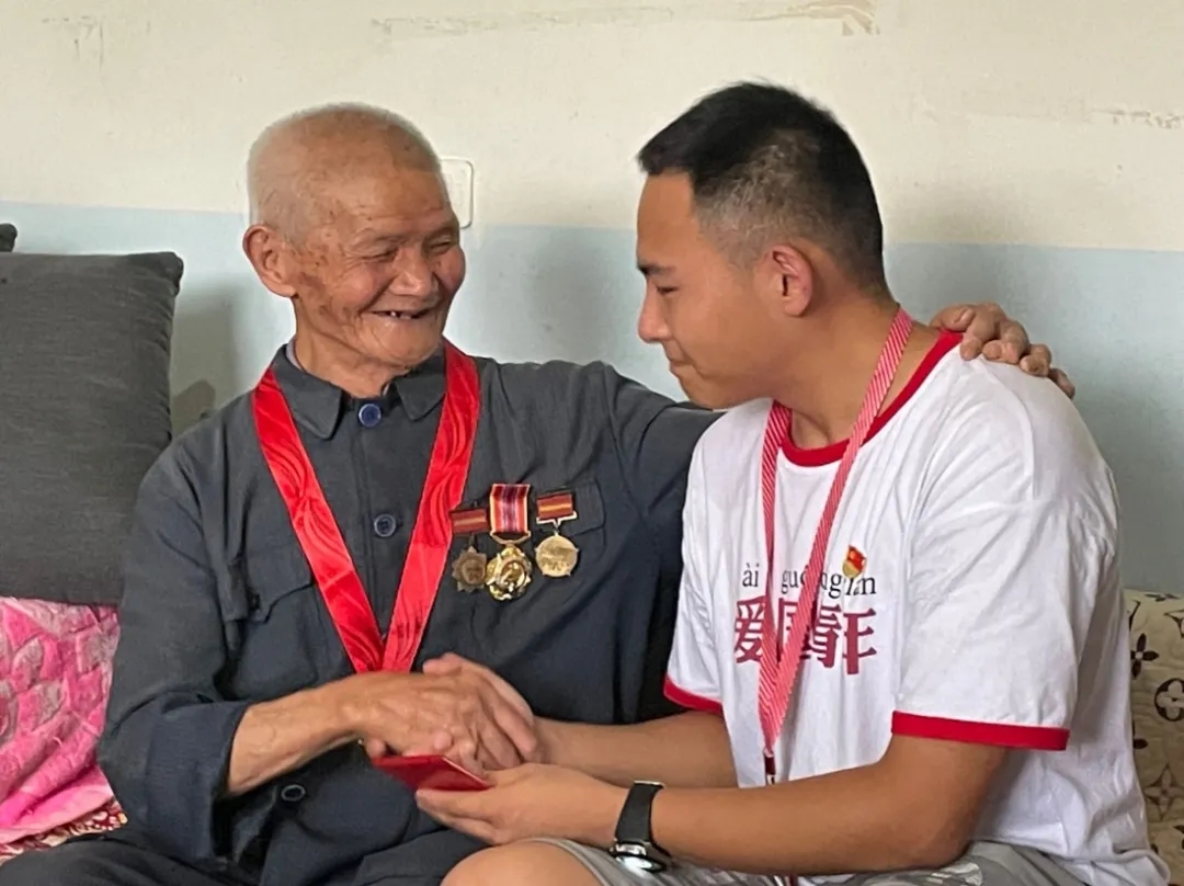 采访中,冯爷爷谦虚的说:“我自认为对党和国家没有多大贡献,只是一直坚信要跟党走、听党话。我们那时候当兵每个月也就两毛钱,但是没有人在乎,大家纯粹是为了革命,为了全国的解放。现在我已经老了,九十多岁了,也干不动了,但我依然拥护共产党。党和国家培养的你们这些大学生,比我们那时候要有文化、也更高级些,希望你们好好地把我们的国家巩固起来,能够为国家贡献出更大的力量。”
