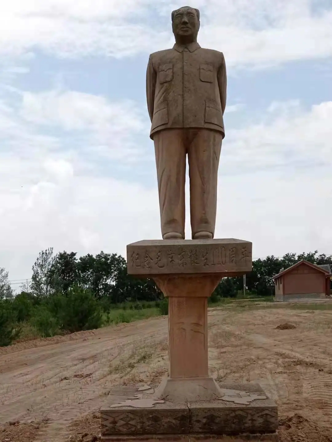在这片黄土地上,面朝东方,树立着毛泽东同志的全身像。展示着这位东方伟人的磅礴气势。