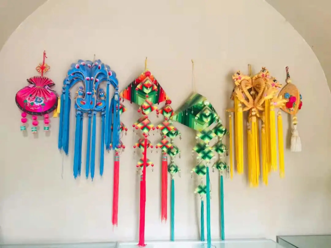 开放参观的窑洞里,不仅陈列出了红军用过的的草鞋,步枪以及当时村民使用的农用工具等老物件儿,展现军民一家亲的红色传统,在陈列室里,我们还看到了许多精美的当地特色手工艺品。