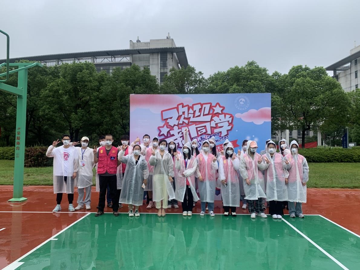 由于疫情防控常态化工作需要,今年新生入学需佩戴口罩,在校门口通过体温检测,并查验行程码、苏康码和返校码,无异常者方可进入校园。同时,管理学院的志愿者举着引导牌和老师在路边最显眼的位置等待着新生的到达。