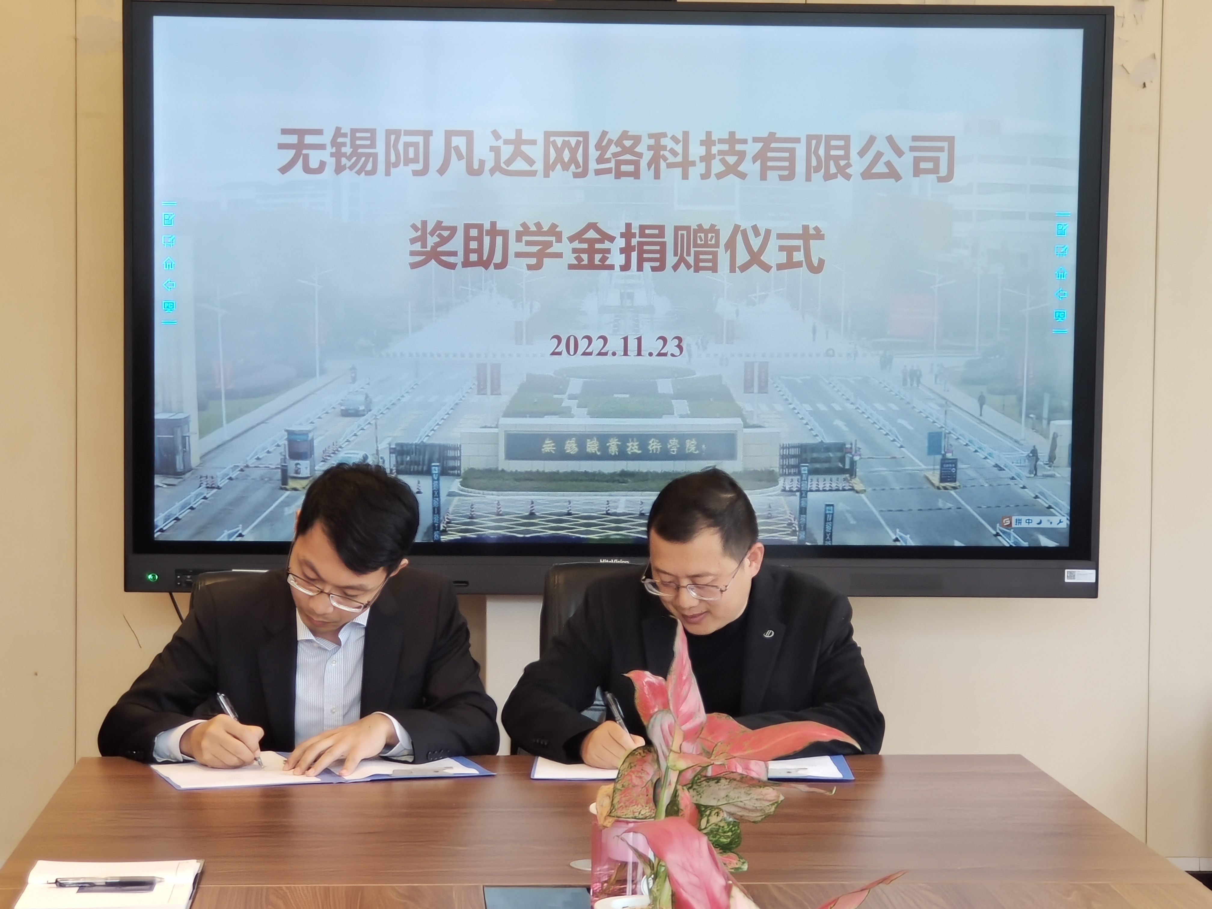 会议开始,宋瑞超向与会人员介绍了本次捐赠活动的概况,并介绍了优秀校友周满意及其公司的情况。周满意表达了对母校和恩师的感激之情,也祝贺母校取得的各项成绩,并表示以后会一如既往地关心和支持母校的发展。强伟纲介绍了学校多年来的发展情况及创办无锡职业技术大学的相关情况,感谢优秀校友对母校发展的支持和奉献并为其希望校友们常回母校,开展更进一步的交流合作。捐赠仪式后,周满意还结合自己的求学和工作经历,与学弟学妹们分享了求职创业过程中的经验和感悟。他指出,在校学生正处于学本领、涨知识、打基础的关键阶段,要增强自律意识、努力奋斗、积极进取。参加讲座的同学们收获满满、深受感动。他们表示将汲取优秀校友的榜样力量,志存高远、脚踏实地,勇担时代使命。