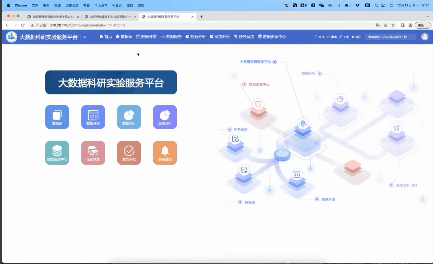 管理学院积极融入学校智能制造校和双高建设。日前由汪志晓老师负责的智能制造业客户价值大数据分析实验室取得阶段性进展,该实验室项目的核心——大数据科研实验服务平台已顺利上线,并通过了专家组验收。该实验平台由苏州国云数据科技有限公司承建,经过2个月的开发、调试,在数据采集、数据处理、数据建模和数据分析等方面均已经达到了招标文件和合同约定的要求。该平台经过二次开发后,还嵌入了数据采集工具以及深度分析工具,可以满足管理学院众专业纵横向科研项目的研究需要。
