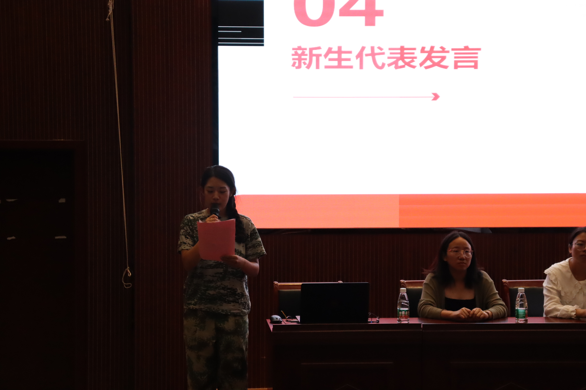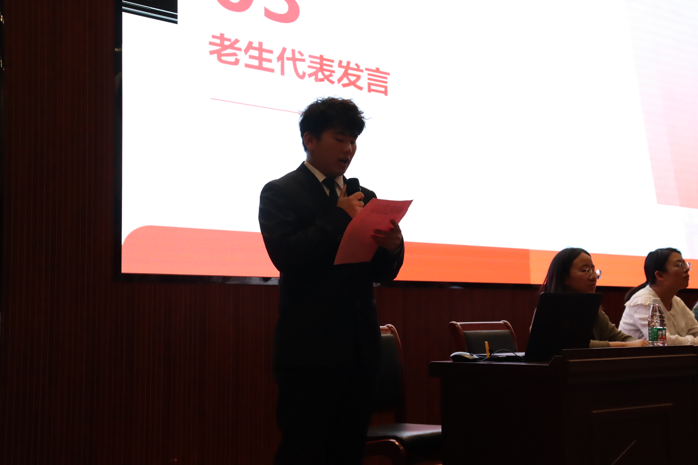 老生代表冯子豪为新生们传授学习经验,新生代表王怡淳发表未来展望。