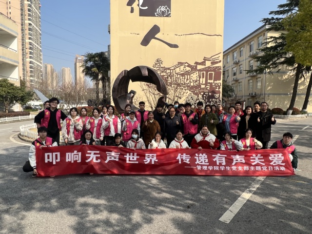 为深入学习贯彻习近平新时代中国特色社会主义思想,进一步弘扬中华民族扶弱助残的传统美德和“奉献、友爱、互助、进步”的志愿服务精神,增强党员的先锋模范作用和服务意识,3月15日下午,管理学院学生党支部走进无锡市特殊教育学校开展“叩响无声世界 传递有声关爱”主题党日活动。学院党总支副书记丁正荣带队,学生党支部部分党员参加活动。