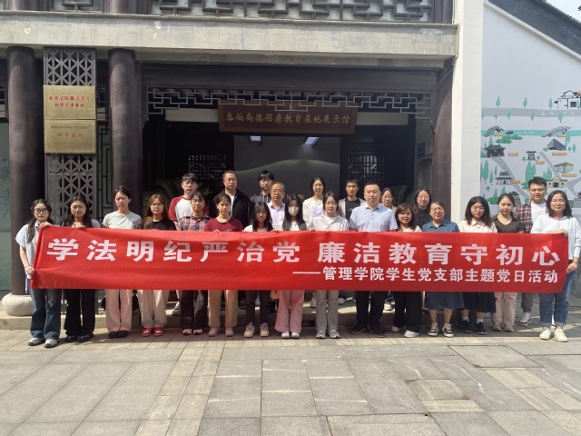 为切实加强党风廉政建设,扎实推进支部党纪学习教育,增强师生党员廉洁自律意识,6月4日下午,管理学院学生党支部组织师生党员赴梅村泰伯尚德倡廉教育基地展示馆开展“学法明纪严治党,廉洁教育守初心”党风廉政教育主题党日活动。