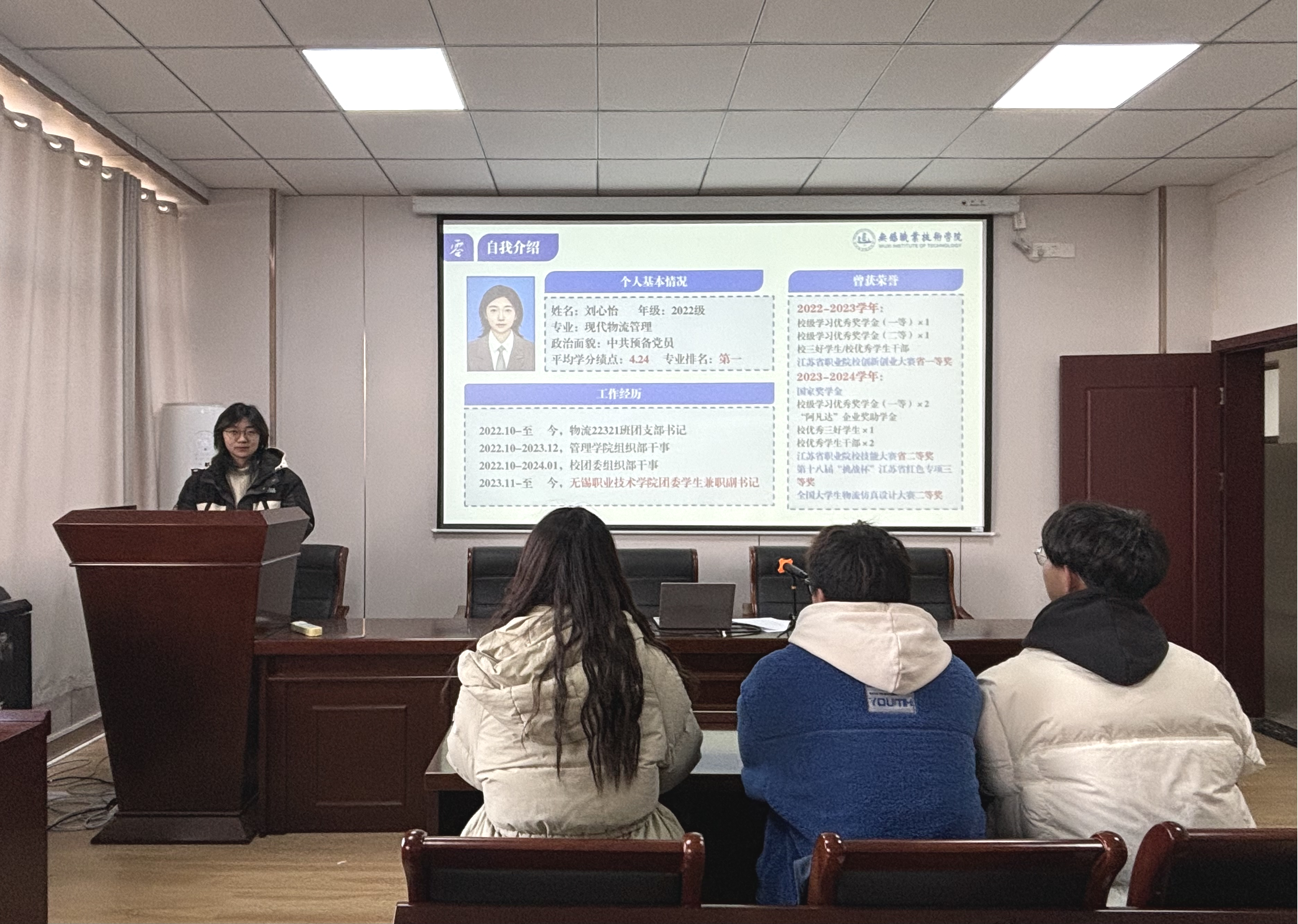 为充分发挥优秀学生党员的榜样引领作用,激励学生以奋斗书写青春华章,管理学院于2024年12月23日下午14:00在J1-404成功举办了“跟着光·成为光·逐梦未来”主题宣讲会。本次宣讲会邀请了中共预备党员、校团委学生兼职副书记、国家奖学金获得者物流22321班刘心怡同学作为主讲嘉宾,与学院同学分享她的学习经验与成长故事。