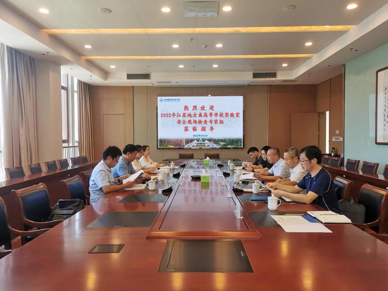 8月4日下午,江苏地方属高等学校实验室安全现场检查第十三检查组魏永前、彭芳、郑磊、姜享旭一行4人莅临我校,检查实验实训室安全情况,学校在综合楼辅楼F201会议室召开汇报会,副校长强伟纲、资产处、保卫处、科技处、后勤处等部门相关负责人参加会议。