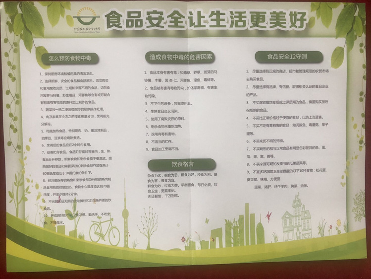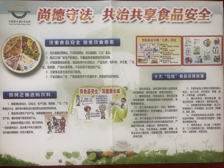近年来,学校领导、后勤处对食品安全工作高度重视,多指并举、强力推动。强调食品安全事关教师及学生的身体健康和生命安全,是民生工程、民心工程,更是一项重大而艰巨的政治任务。在开展宣传周活动的同时,学校积极配合各级监管部门继续深入开展大排查大整顿大提升行动,强化对食品生产经营企业的日常监督检查,开展农牧、公安、质监、食药等多部门联合执法,严厉打击食品违法犯罪行为,特别是要加强重大活动食品安全应急保障,切实做到“滴水不漏、万无一失”,努力提高全区各族人民群众食品安全获得感、幸福感和安全感。