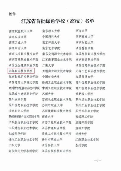 近日,江苏省教育厅、省发展和改革委员会、省生态环境厅、省住房和城乡建设厅等四部门联合发布首批江苏省绿色学校(高校)名单,我校位列其中。