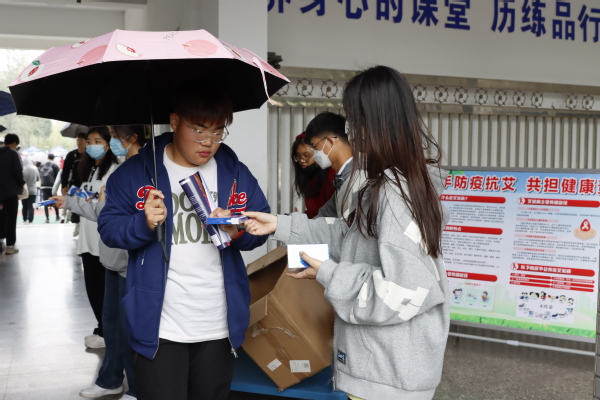 活动由后勤管理处和学生志愿者共同组织实施,通过摆放展板、现场宣讲等方式围绕疾病的认知、传播途径、防治措施等3个方面内容展开宣传,引导师生了解艾滋病及其预防知识,正确对待艾滋病患者。活动现场发放检测材料近2000份。