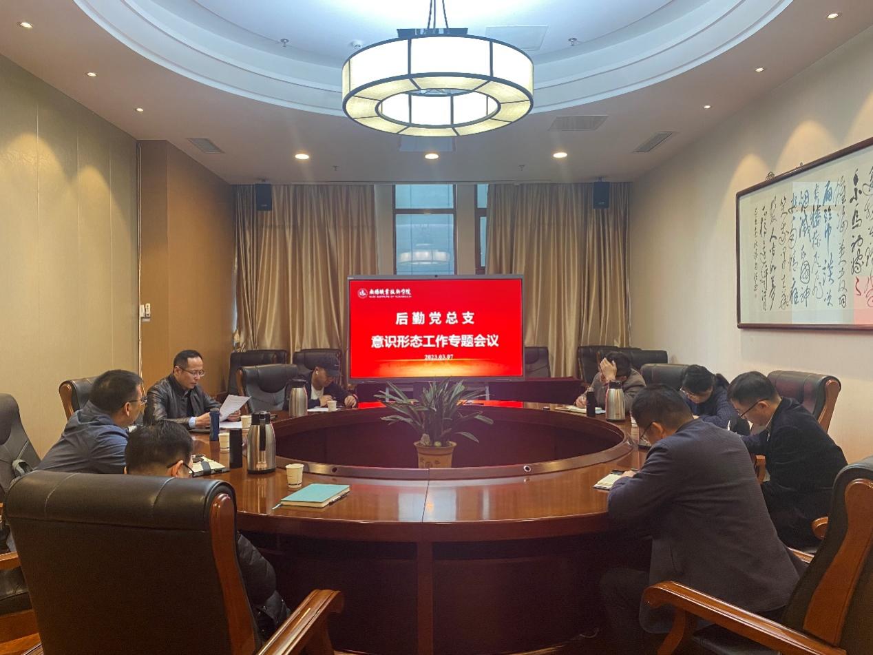 为进一步增强意识形态工作责任意识、守好意识形态阵地,研究、部署当前和下阶段意识形态工作,3月7日,后勤党总支在厚德楼F202召开意识形态工作专题会议,党总支委员、各部门负责人、党支部书记参加会议。会议由后勤党总支书记宋静辉主持。