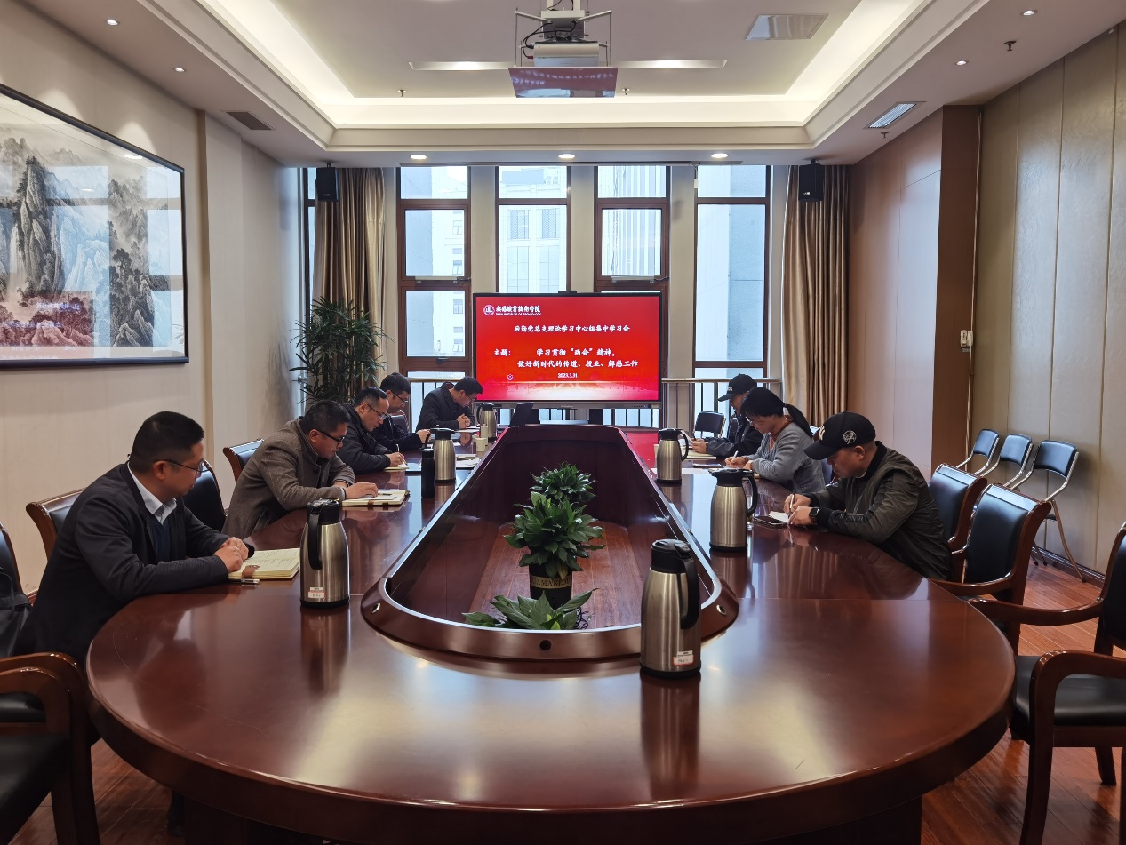 宋静辉、吴乃鑫领读学习了全国两会专题相关材料,习近平在中央党校建校90周年庆祝大会暨2023年春季学期开学典礼上的重要讲话,中国共产党第二十届中央委员会第二次全体会议公报,《推进领导干部能上能下规定》,观看了纪录片《来自人民》。资产与实验实训设备管理处处长聂庆明作了《学习贯彻两会精神,努力开拓工作新篇章》、副处长吴香菊作了《学习贯彻两会精神,立足本职服务岗位,做好传道、授业、解惑》的重点发言,其他人员结合本部门或者本岗位工作畅谈了本次学习体会。
