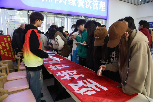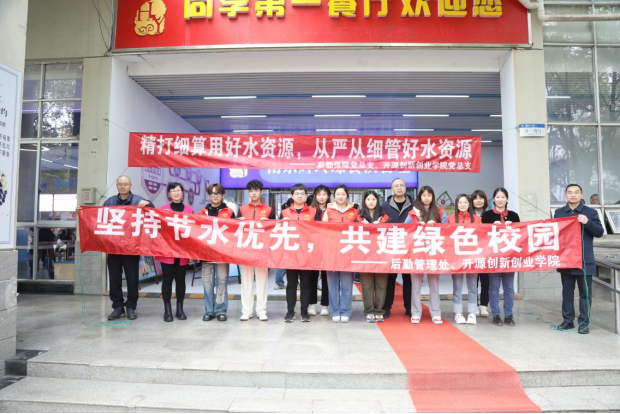 随后,我校后勤管理处能源科、开源创新创业学院师生党员与管理中心人员一起开展现场宣传活动,通过发放宣传材料、师生参与节水知识竞赛、横幅签名等多种形式,进一步扩大宣传效果。除了当天的集中活动,3月22日至28日中国水周期间,学校还在校园电子屏持续播放节水宣传视频,将节水理念渗透到校园每个角落。