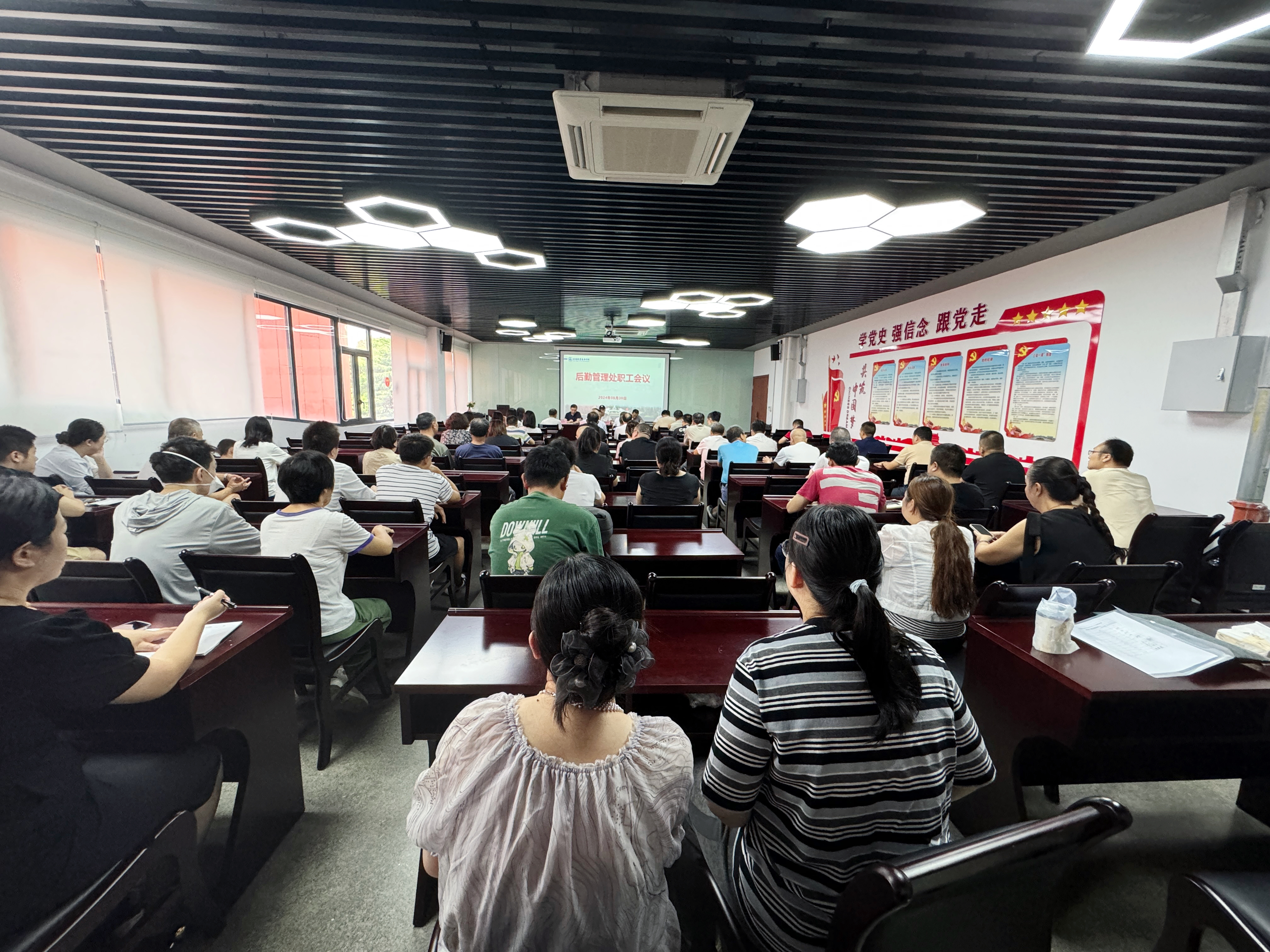 2024年8月30日上午,后勤管理处召开了新学期职工会议,后勤管理处全体教职工与物业公司、餐饮公司负责人参加了会议。