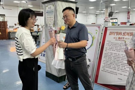 9月10日上午,后勤管理处准备了芬芳的鲜花、丰富的午餐,此外,校工会还特别定制了美味的蛋糕,与教师们一同分享这份甜蜜与喜悦。当老师们迈步走进餐厅时,迎接他们的是面带微笑、手捧鲜花的后勤管理处工作人员的一句“老师,祝您教师节快乐!”;收到鲜花和祝福的老师纷纷报以感谢和欣喜的笑容。