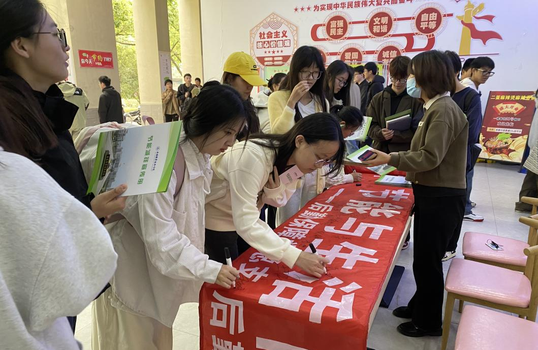 活动当天,校园内洋溢着浓厚的节能宣传氛围。在学校的食堂楼下,能源科的老师们通过发放精心制作的节能减排宣传册、横幅签名活动等方式,让过往的师生对节能低碳有了更深入的认识,师生们纷纷在横幅上签下自己的名字,承诺从自身做起,从点滴做起,积极践行节能低碳生活方式。