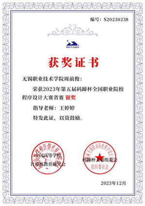国家级教学成果二等奖(物联网应用技术专业人才培养“快响应·多通道模式研究与实践) |