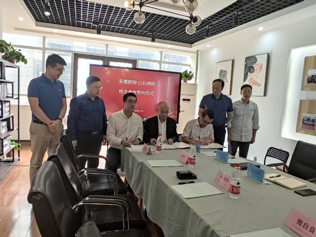 10月12日上午,山石网科通信技术有限公司首席技术专家高级副总裁杨庆华一行4人及江苏东坤电子科技有限公司总经理周圣杰一行3人访问我校物联网技术学院,并签署校企合作协议。我院党总支书记曹建峰、院长蔡建军、副院长乐明于及计算机技术系教师参加了签约仪式。