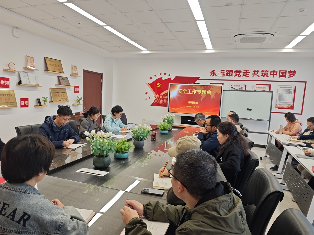 2024年11月19日下午,基础课部如期举行了期中安全例行会议。会议由基础课部主任王志萍主持,部门全体教职工参会。
