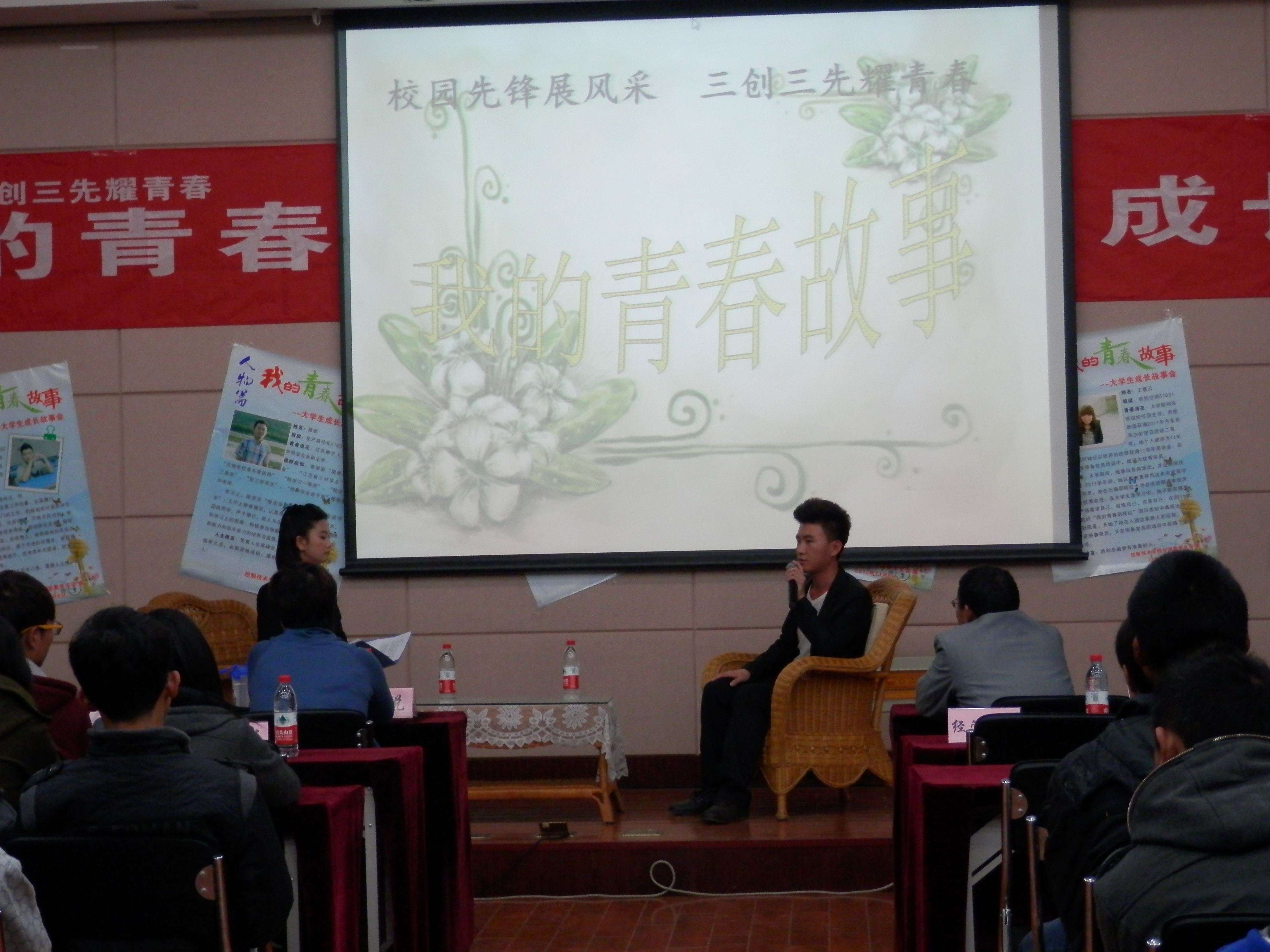 11月6日晚上6:30,控制技术学院在国际交流中心二楼成功举办"我的青春故事会",学院团委书记徐悦老师、分团委花树洋老师和大一各班级代表180多人参加,故事会由学生会干部李贝贝和徐韬主持,大家聆听郝宗豪、陈胜、王慧云、王贤斌、尹其营、张乔6位控制学院先进典型学子的青春故事。