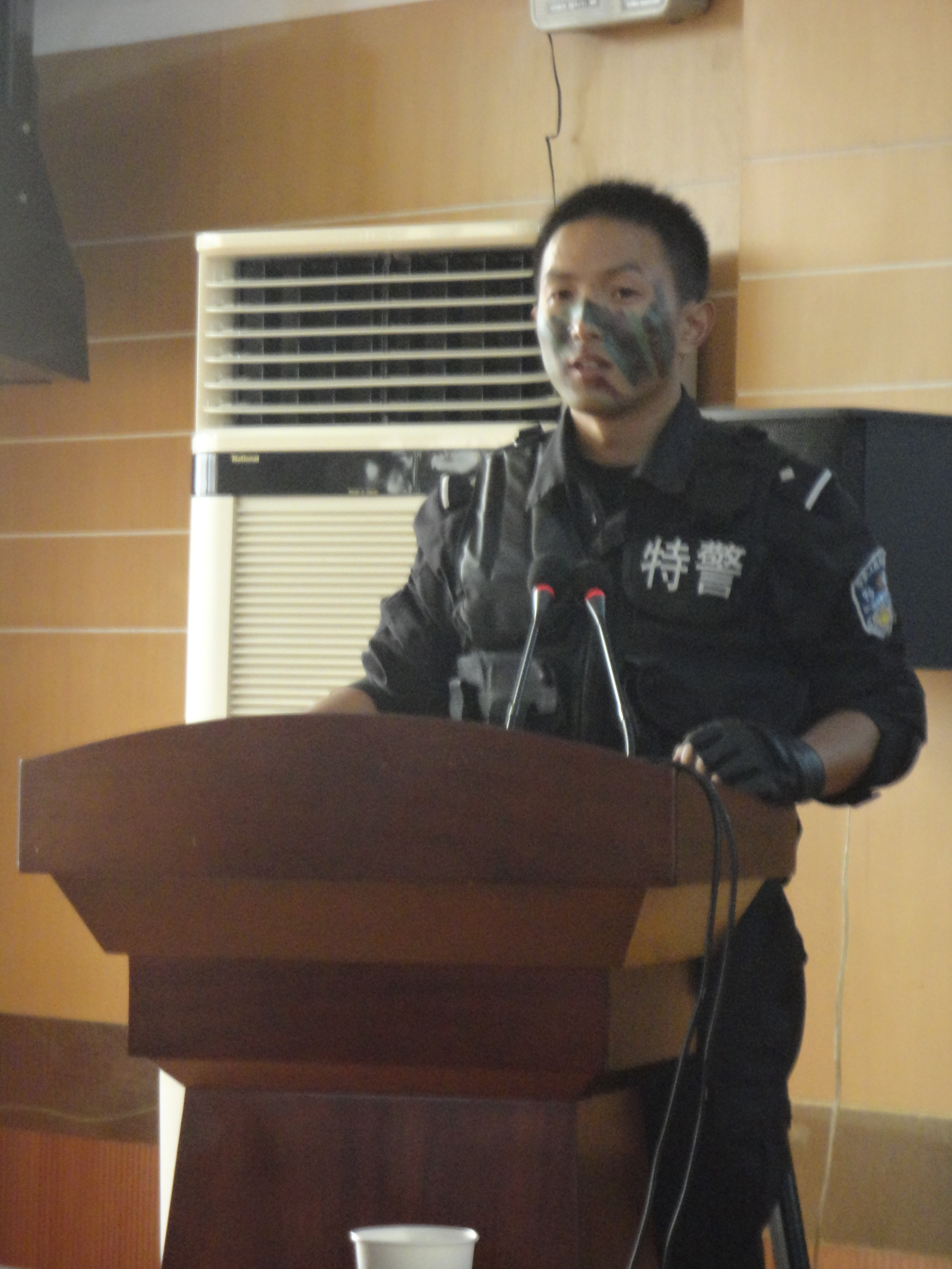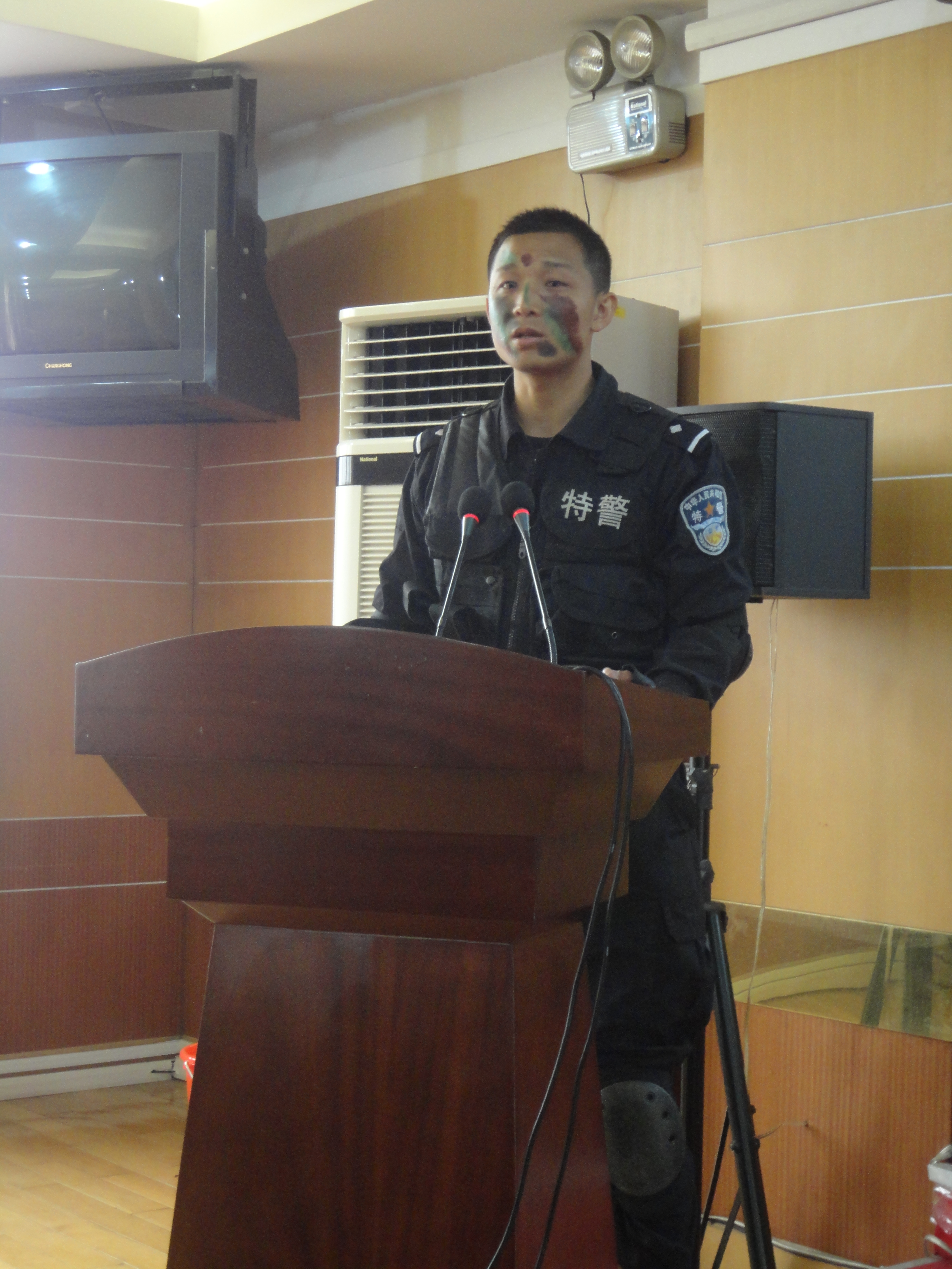 2012年11月20日13:30,控制学院党总支和二级关工委组织学生党员和发展对象共88人,在党总支副书记苗勇、辅导员花树洋、二级关工委顾以琳老师带领下,来到无锡市公安局特警支部参观、交流。该单位是无锡市基层党建工作示范点、无锡创先争优先进集体,多年获得无锡市先进基层党组织,此次活动受到特警领导的热情接待,同学们先后参加了特警“荣誉室”、宣传画展,亲眼目睹了特警队员训练风采,为我们表演了格斗、布阵、棍术、徒手攀爬、模拟解救人质,赢得了阵阵掌声。接着,观看特警成功处置“1.29”、“3.03”、“6.06”、“3.23”四起劫持人质案件视频,充分展现了他们竭诚奉献、忠诚履职的能力和风采,成为锡城百姓的“守护神”。最后安排了3名优秀青年特警党员与我们同学们进行互动交流,大家分享了特警队员内心最真实、最真切的想法和他们对未来的展望,还鼓舞我们大学生争做党的好儿女。此次活动,对我们青年大学生是一种鞭策,让同学们在困难面前学会了“坚持”,更加努力,勇往直前。