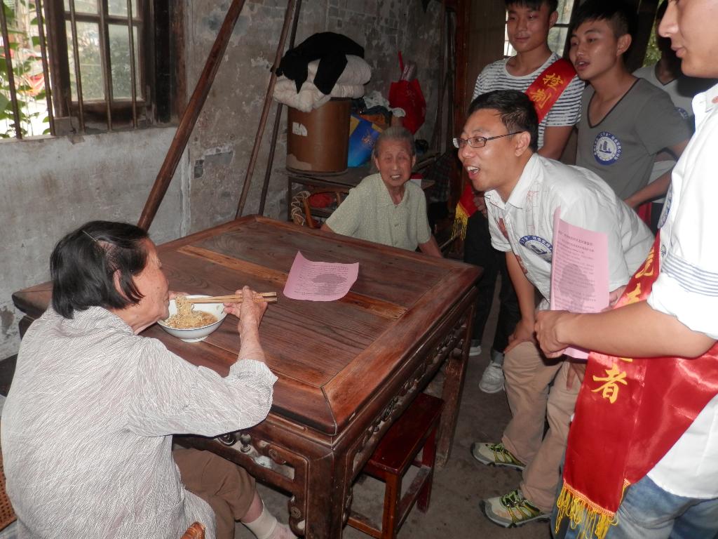 经过半个多小时的行程大家抵达了位于雪浪镇方桥村老党员的家庭住居。我们到达的时候恰好赶上阿婆正在吃晚饭,今年近80岁高龄的阿婆精神矍铄谈吐从容对我们的到访表示很欢迎让我们感受到了阿婆平易近人热情好客的性格。辅导员花树洋老师亲切询问老同志的身体状况,并说明了我们此行的目的。阿婆向我们介绍了自己作为党员家庭的一员,时刻不忘都在发挥党员代表的起模范带头作用。阿婆用自己的亲身经历告诉我们“群众是根本,全心全意为人民服务正是我们党的宗旨。”给我们上了深刻的一课,让来拜访的我们最记忆深刻的还有阿婆的晚饭,特别简单,只吃了一碗方便面。阿婆年纪这么大了,吃一碗方便面营养能跟的上吗?还有阿婆的住的房子,里面摆放的东西都是几十年前的老家具,还有老的灶台。阿婆的艰苦朴素给来拜访的大家留下了深刻的印象。同时也在提醒年轻的党员。最后,来拜访的年轻党员与老党员们进行合影留念。