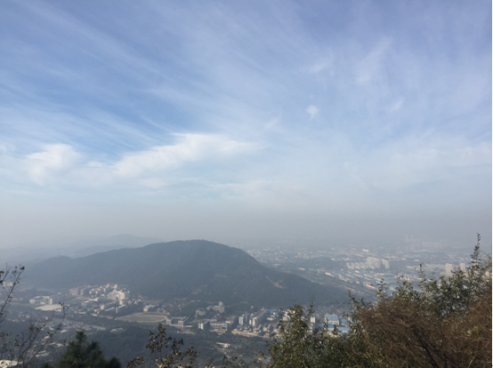 周六早晨8点集合,全班乘坐大巴来到惠山森林公园,沿侧门小路上山。尽管山路崎岖不平,同学们仍然互相鼓励相互帮助登上山顶。登山的过程虽然艰辛,但征服惠山登上山顶后,一览众山小的感觉让每个同学都倍感自信。