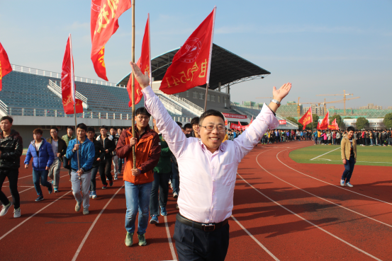 活动打出了“我运动,我快乐”、“奔跑吧,小伙伴们”标语,控制技术学院各团支部高举班级旗帜,随着一声发令枪响,在控制学院分团委书记花树洋老师的带领下,16个代表方队浩浩荡荡地从田径场出发,环校长跑持续了近半个小时。