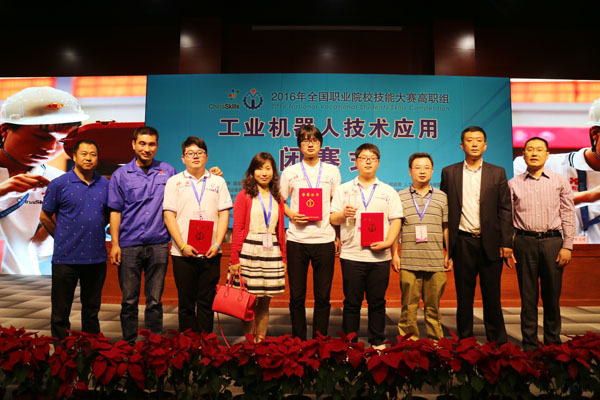 参加本次工业机器人技术应用赛项的代表队由控制技术学院王家志、王浩、佘志远同学组成,控制学院教师芮长颖、郑贞平老师担任指导教师。
