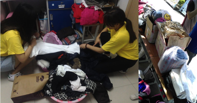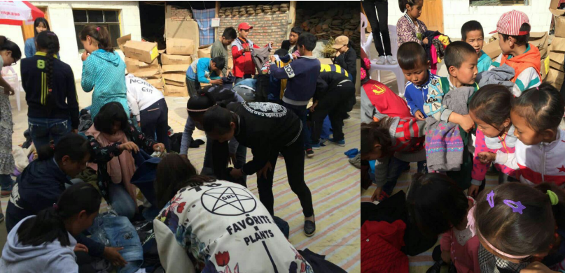 在活动过程中,老师与同学一起相互配合,一起成长,助人悦己,后期我们收到了在边远山区的负责发放衣物的老师发来的照片。希望收到衣物的小朋友能够感受到千里之外还有人们在关爱着他们的心灵,关注着他们的未来,关心他们着他们的成长。