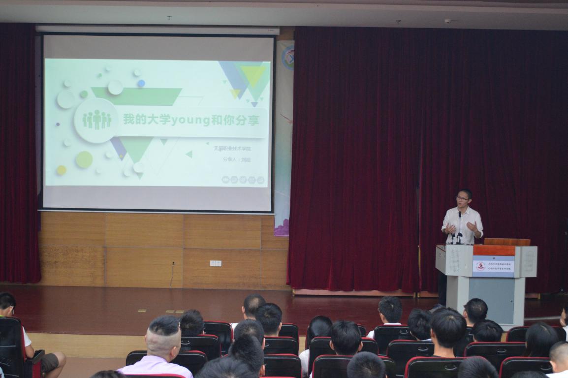 在会上,控制学院党总支副书记苗勇对即将踏入我校继续进修的42名第一届“3+3”学员表示欢迎,同时向他们介绍了学校和专业的基本情况;机电设备21401班刘超同学作为机电专业的学生代表,跟同学们分享了大学三年的学习生活体会,使同学们对即将到来的大学生涯充满了期待。